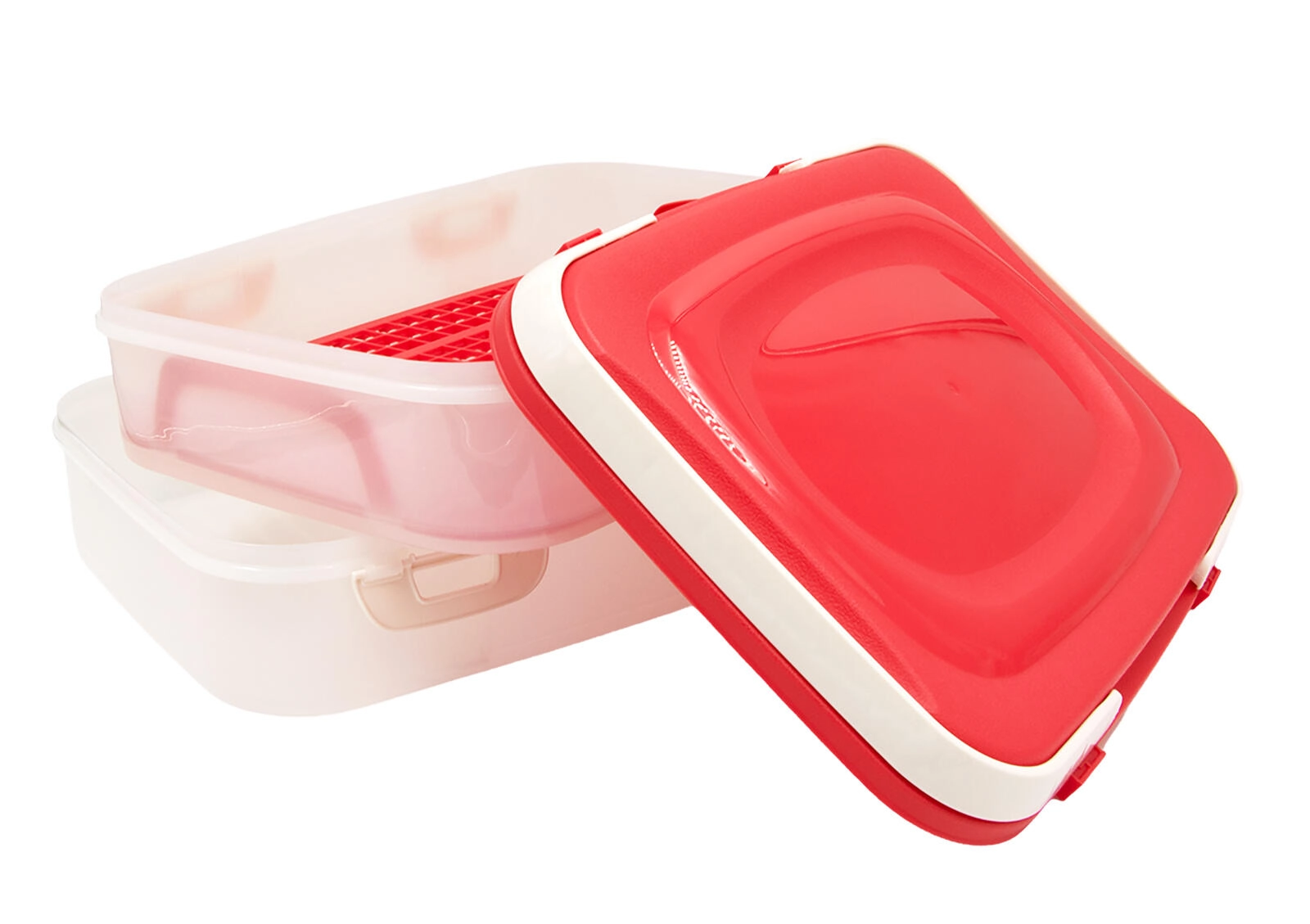 Vyjímatelná mřížka s úchyty pomáhá oddělit obsah a pohodlně jej vyjmout bez poškození chlebíčků či zákusků.