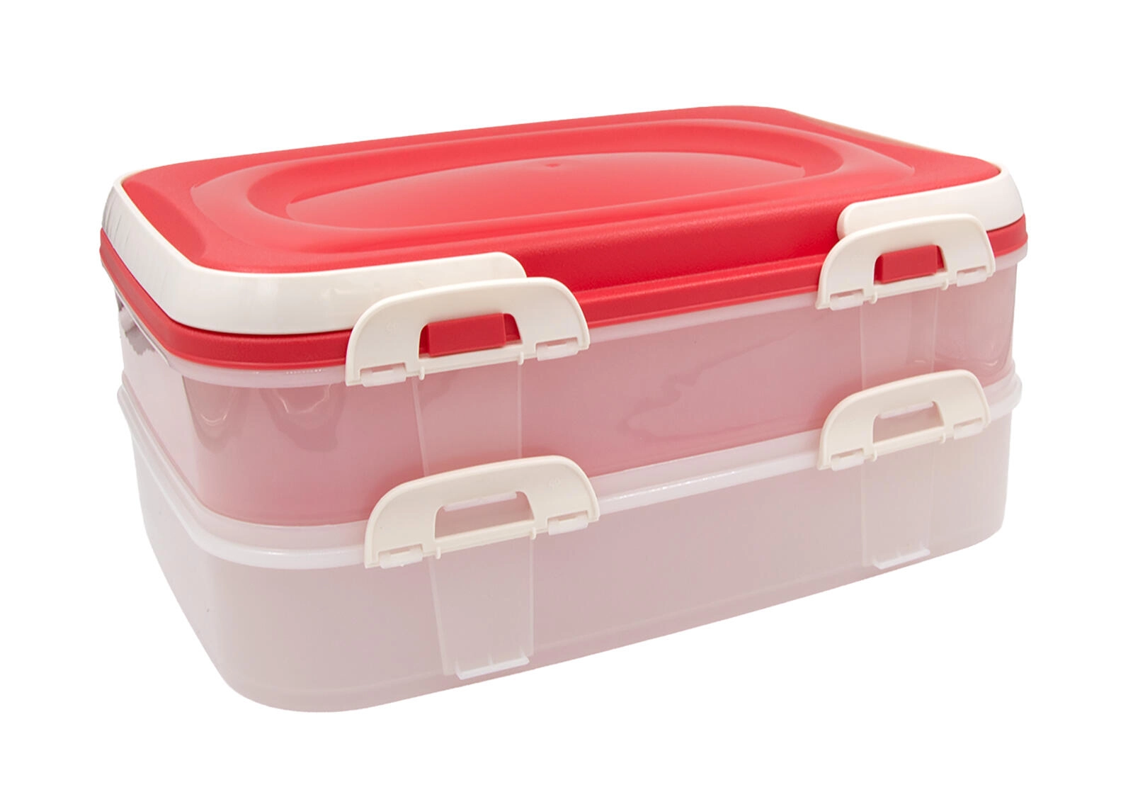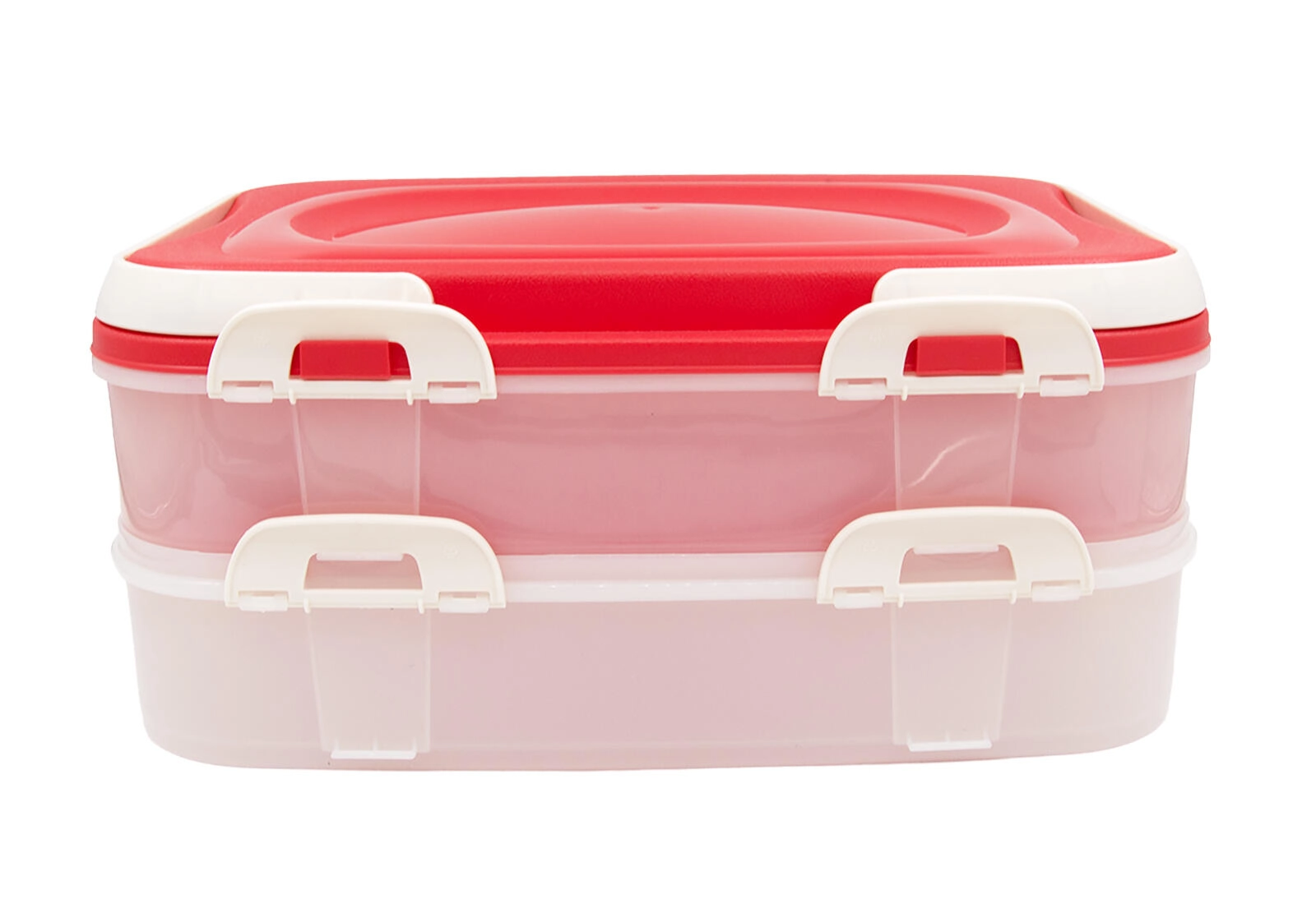 Hledáte praktický box na chlebíčky, zákusky, ovoce či pečivo? Tato 2patrová přenášecí dóza s pevnými klipsy a držadly zajistí, že vaše potraviny dorazí na místo čerstvé a bezpečně uzavřené. Průhledné stěny umožní rychlou kontrolu obsahu a růžové víko dodá elegantní vzhled každému stolování.