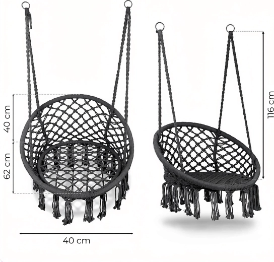 Závěsné křeslo boho MultiGarden je perfektní volbou pro milovníky pohodlí a lehké elegance. Díky univerzálnímu stylu se hodí do interiéru i exteriéru – od obývacího pokoje přes ložnici až po terasu a zahradu. Jemné houpání pomáhá zrelaxovat po náročném dni, ať už u ranní kávy, při čtení knihy, nebo během večerního odpočinku.