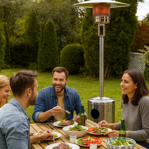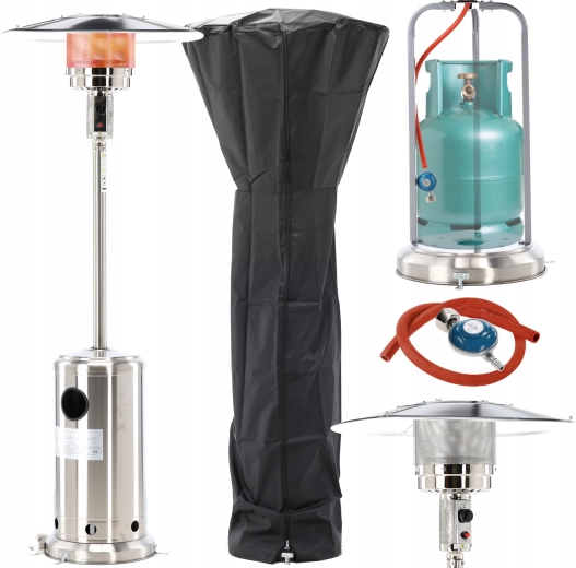Užijte si teplo na terase i v chladnějších dnech s elegantním plynovým ohřívačem z nerezové oceli o výšce 221 cm. Nabízí výkonný a rychlý ohřev, plynulou regulaci a bezpečnostní prvky včetně automatického vypnutí při převrácení. V balení najdete ochranný kryt, plynovou hadici s regulátorem a transportní kolečka pro snadné přesunutí.