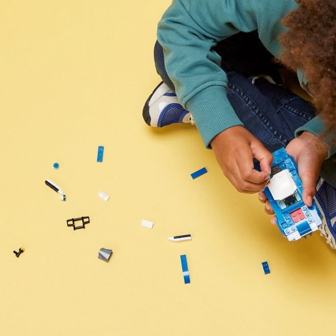 Model LEGO policejního auta nabízí místo pro minifigurku policisty a realistické detaily pro dynamickou hru.