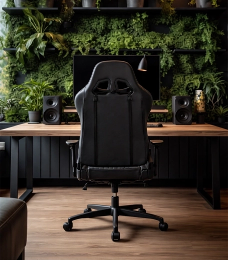 Tvarované polstrování z pěny, bederní polštář a opěrka hlavy podporují správné držení těla a snižují únavu při hraní i práci.