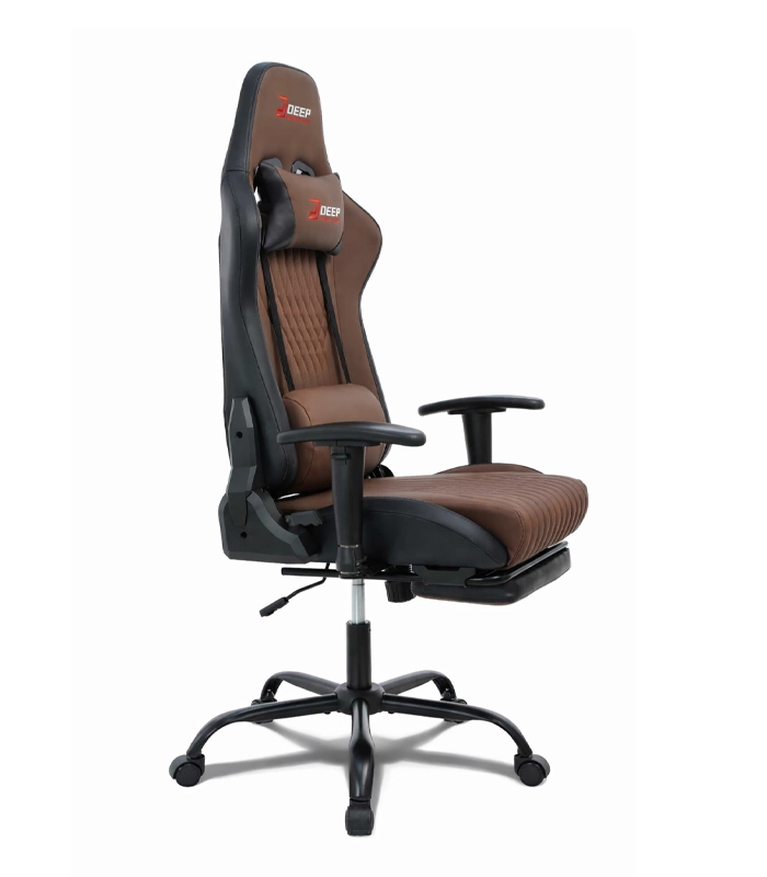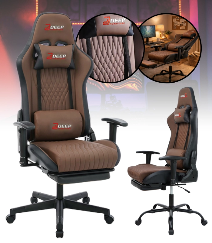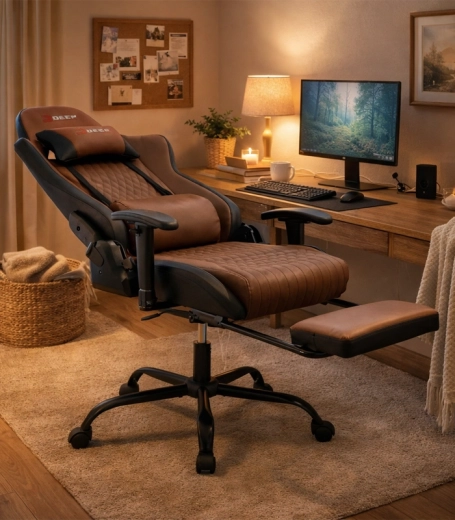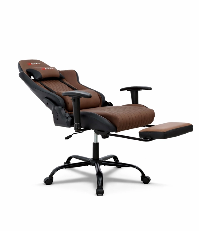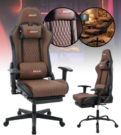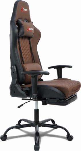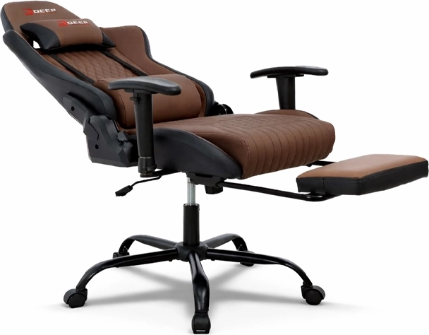Stylové herní křeslo v teplém hnědém odstínu zapadne do herního koutku, domácí kanceláře i studentského pokoje. Sedák z kvalitní pěny, bederní a hlavový polštář uleví zádům a šíji, takže se můžete soustředit na hru i práci. Povrch z PU ekokůže se snadno čistí a dlouhodobě si drží vzhled.