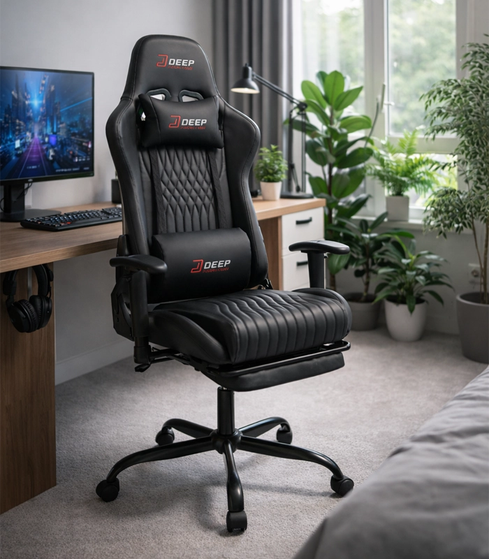 Polštářek pod hlavu a bederní opěrka pomáhají držet správné držení těla. Kvalitní pěna rozkládá tlak a zvyšuje komfort při hraní i práci.