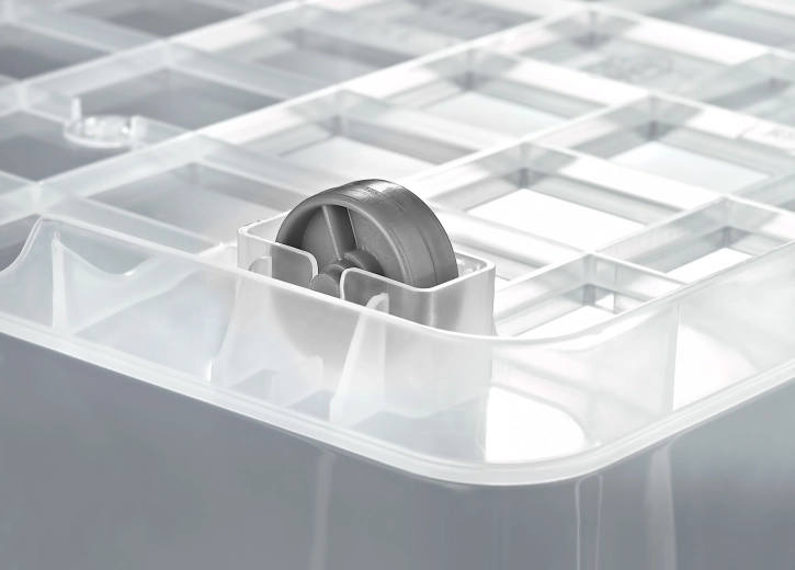 Integrovaná kolečka umožňují snadné přesouvání i při plném zatížení, takže box pohodlně přemístíte tam, kde je zrovna potřeba. Víko se dvěma pevnými klipy zaručuje spolehlivé uzavření a ochranu před prachem a vlhkostí.