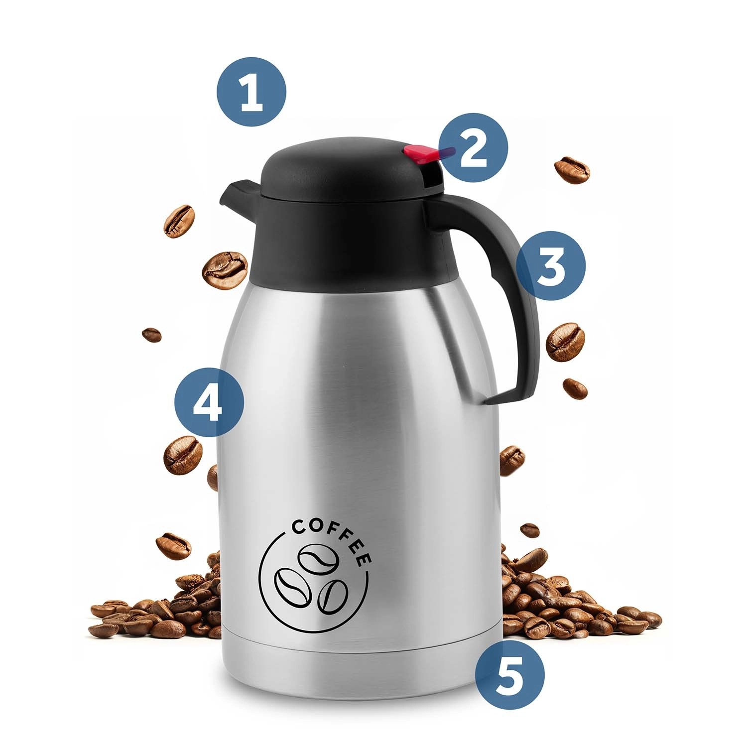 Praktický a stylový pomocník pro domov, kancelář i výlety. Nerezový vakuový džbán BERDSEN s objemem 2000 ml kombinuje moderní vzhled s vysokou funkčností. Dvojitá nerezová stěna poskytuje špičkovou tepelnou izolaci, zatímco automatický uzávěr umožňuje nalévání jednou rukou bez kapek.