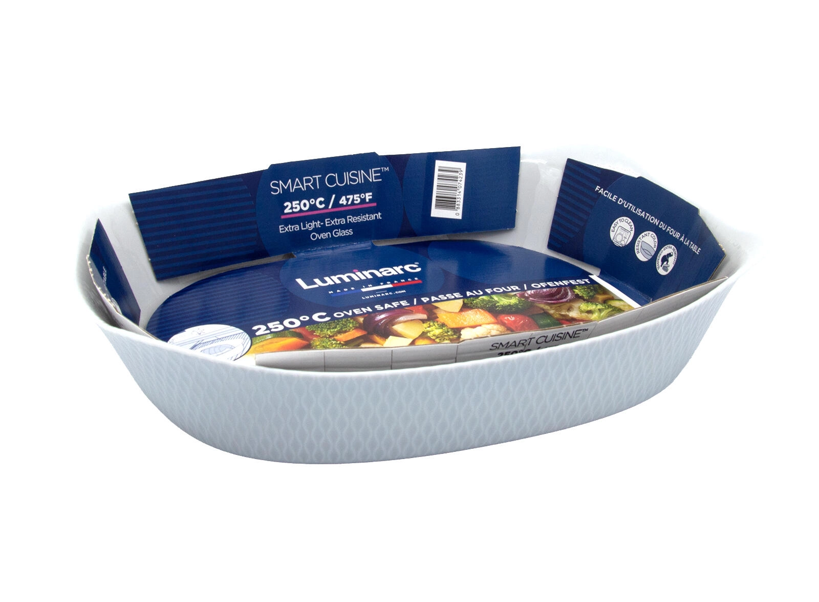 Kvalitní sklo zajišťuje stabilní vedení tepla pro dokonale propečené pokrmy. Bezpečné použití v troubě až do 250 °C.