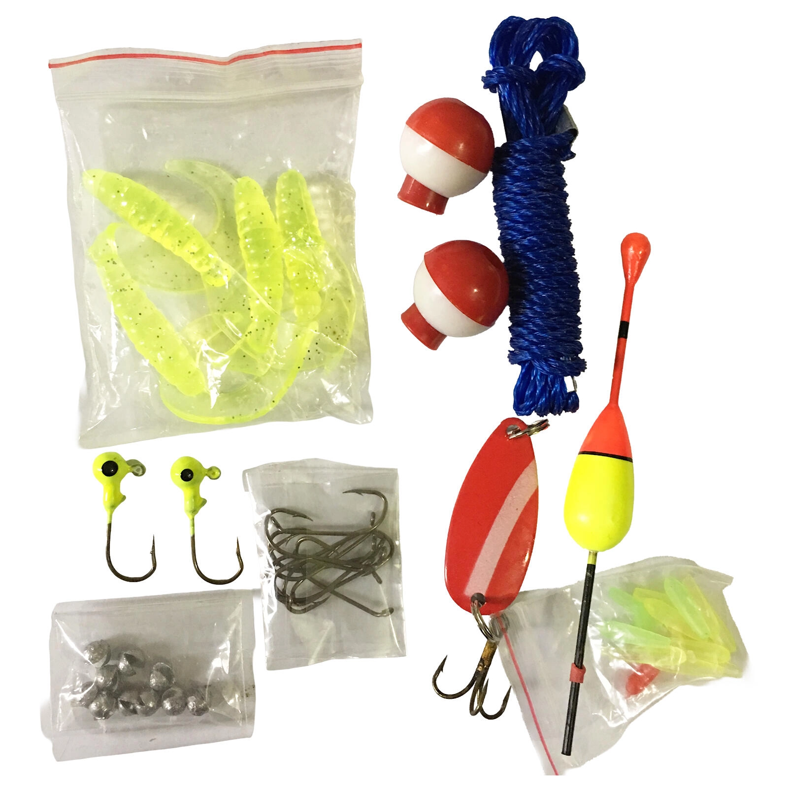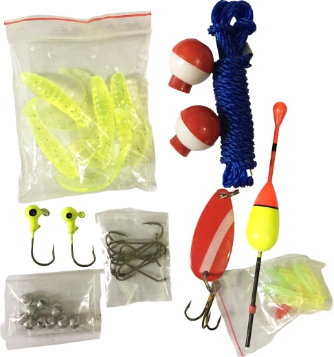 Různé typy nástrah, háčků a splávků pokryjí široké situace u vody – stačí rozbalit a chytat.