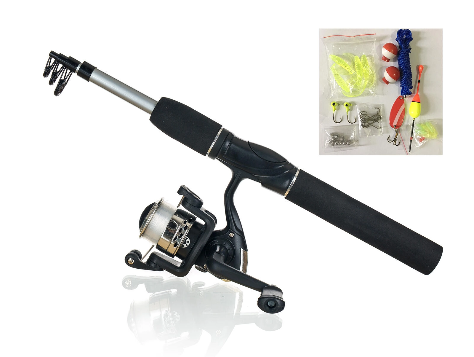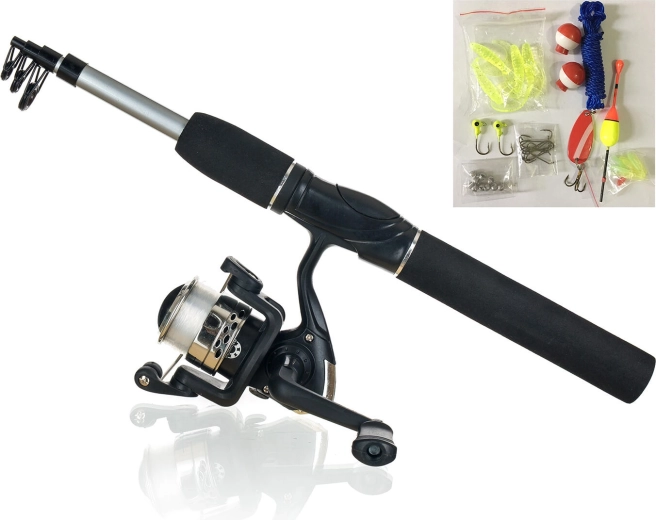 Teleskopický rybářský prut 180 cm s navijákem a příslušenstvím
