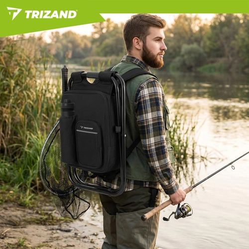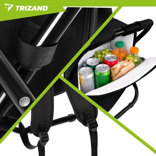 Praktické řešení pro rybáře, turisty i kempaře: chladicí batoh se stoličkou TRIZAND kombinuje 3v1 – sedátko, batoh a termoizolační tašku. Díky pevné ocelové konstrukci s nosností až 150 kg, lehkému provedení a voděodolným materiálům je ideální na výlety, pikniky i dlouhé čekání u vody.