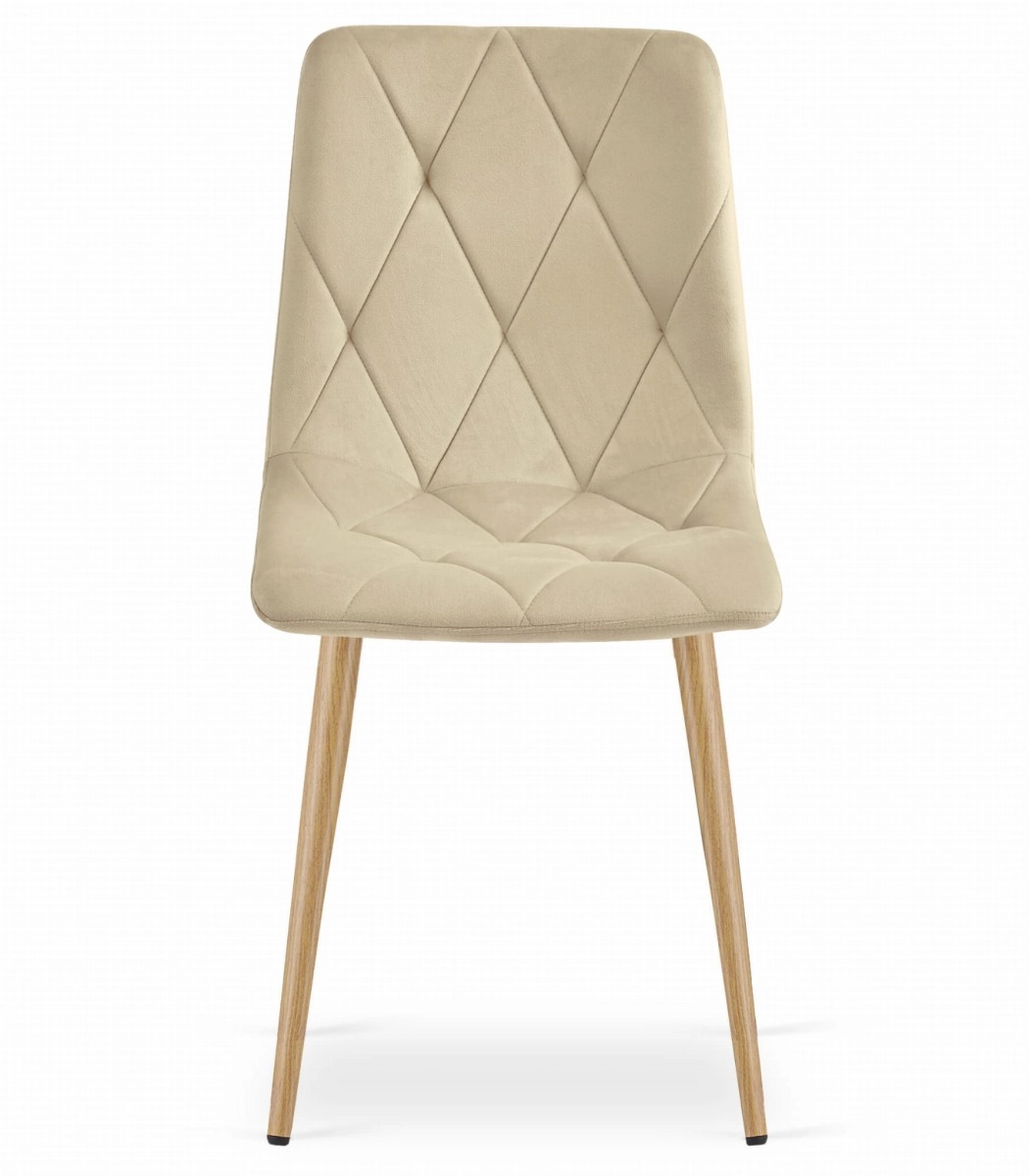 Tato béžová sametová židle kombinuje komfort a moderní vzhled. Měkké čalounění se sametovým efektem je příjemné na dotek, zatímco kosočtvercové prošívání dodává luxusní charakter. Díky ergonomicky tvarovanému opěráku poskytuje pohodlnou oporu zad při každodenním používání v jídelně i obývacím pokoji.