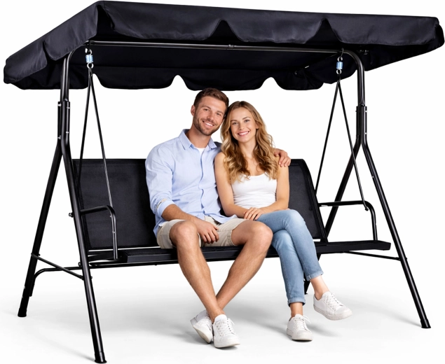 Vytvořte si na zahradě vlastní oázu klidu. Tato 3místná zahradní houpačka MULTIGARDEN kombinuje komfort, stabilitu a odolnost vůči povětrnosti. Díky nastavitelné střeše si snadno upravíte stín podle slunce a užijete si příjemné houpání kdykoli během dne.