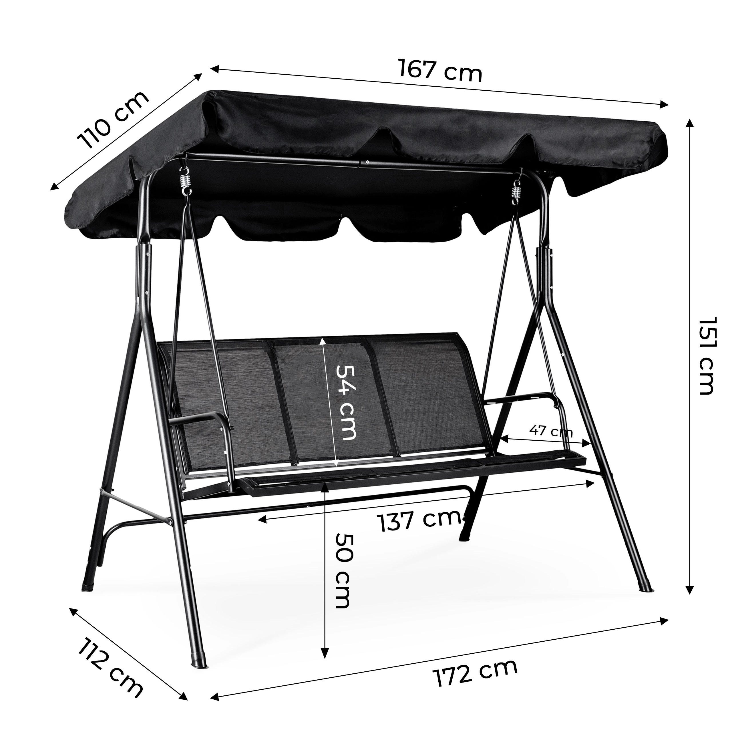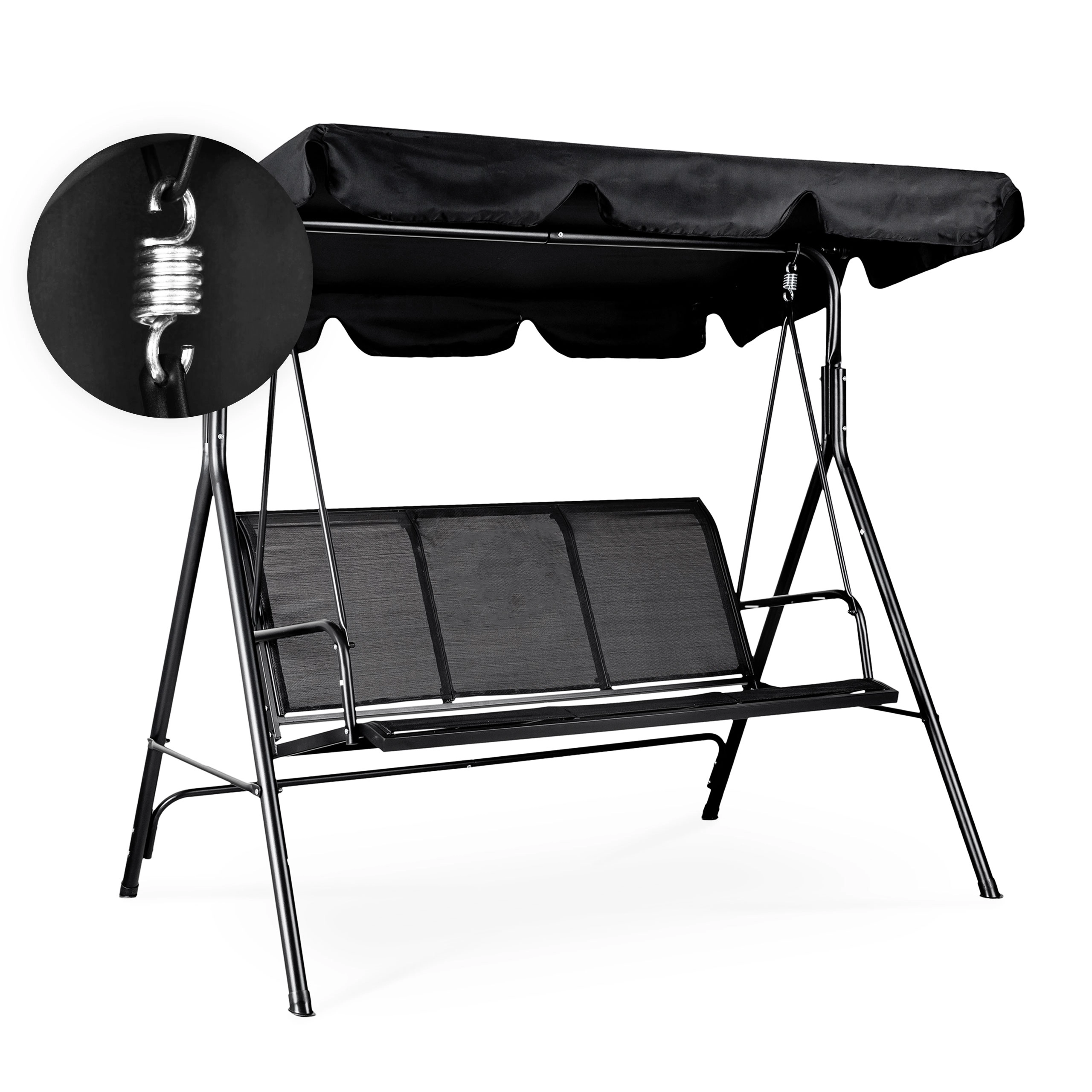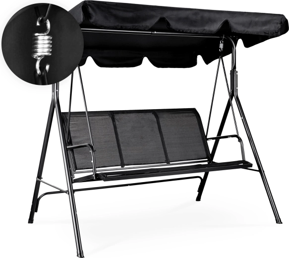 Stabilní A-rám ze oceli a kvalitní pružiny či závěsy zajišťují bezpečné a plynulé houpání bez trhání.