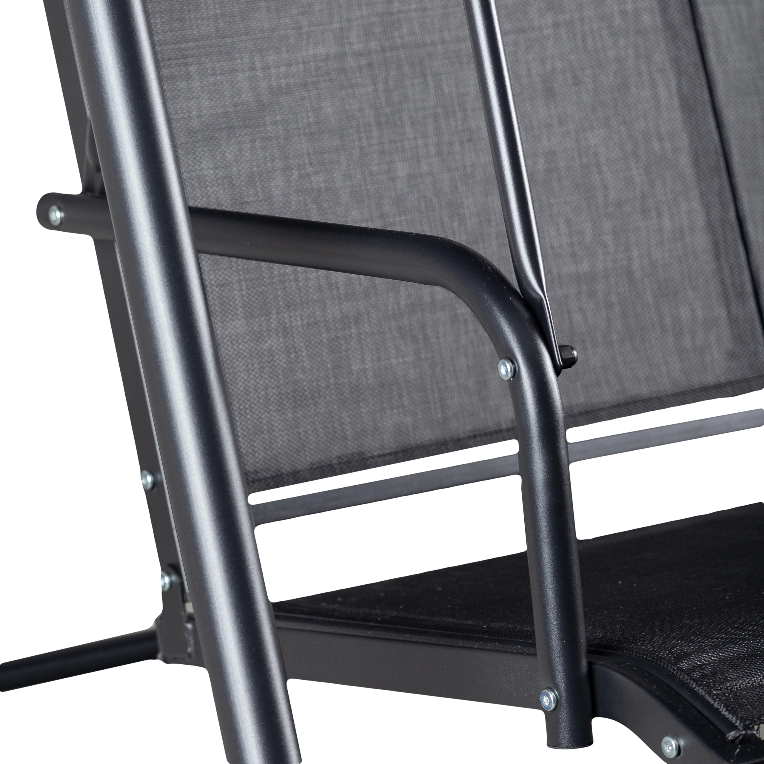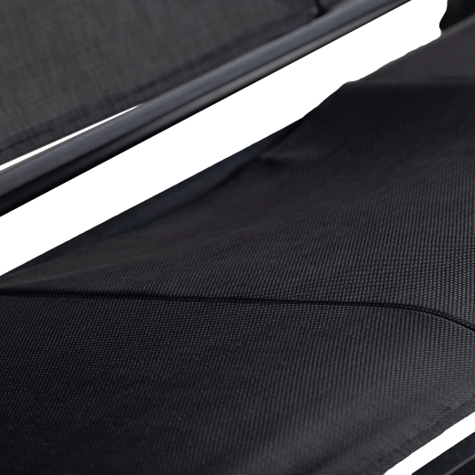 Textilenová síťovina zvyšuje komfort v horku, rychle schne po dešti a snadno se udržuje – ideální pro venkovní použití.
