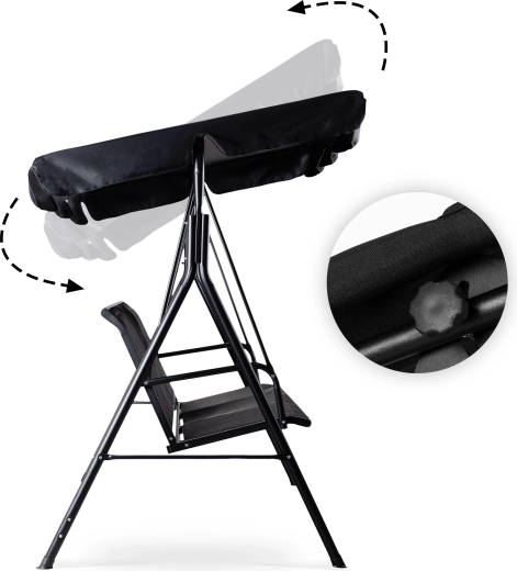 Jednoduchým mechanismem naklopíte stříšku tak, abyste získali příjemný stín během celého dne a ochranu před lehkým deštěm.