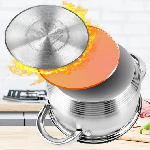 Hrnec je kompatibilní s plynovými, elektrickými, sklokeramickými, halogenovými i indukčními varnými deskami. Poklice s odvětrávacím otvorem umožňuje kontrolu vaření bez nadzvedávání a omezuje překypění. Díky odolné nerezové konstrukci se hodí i pro zapékání v troubě do 150 °C a údržbu v myčce nádobí.