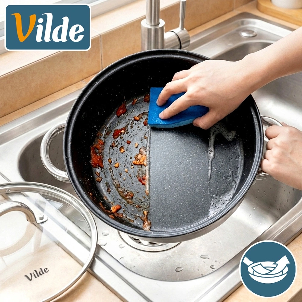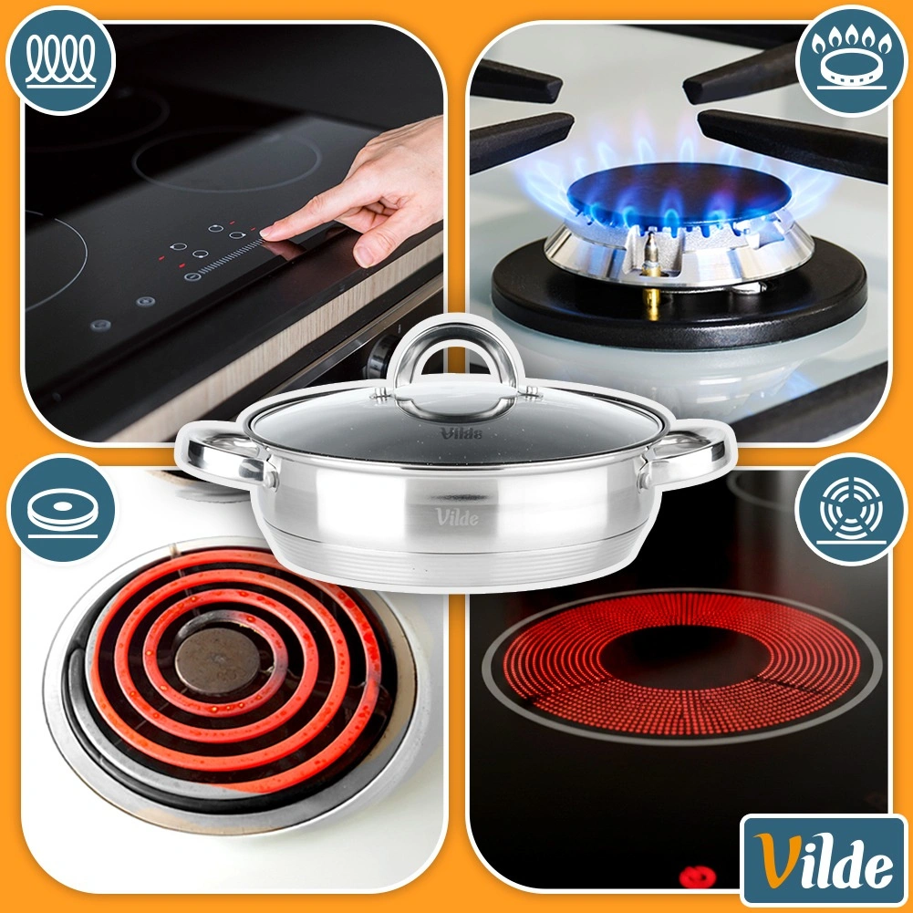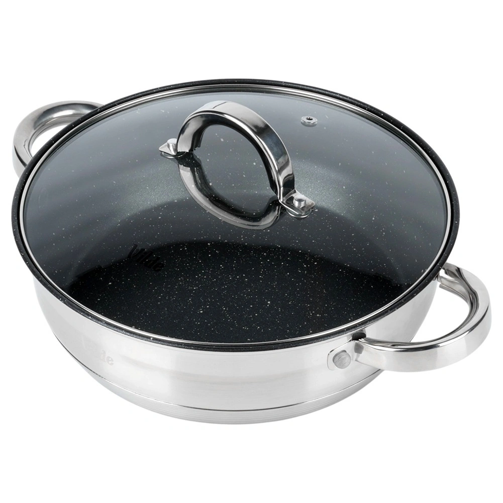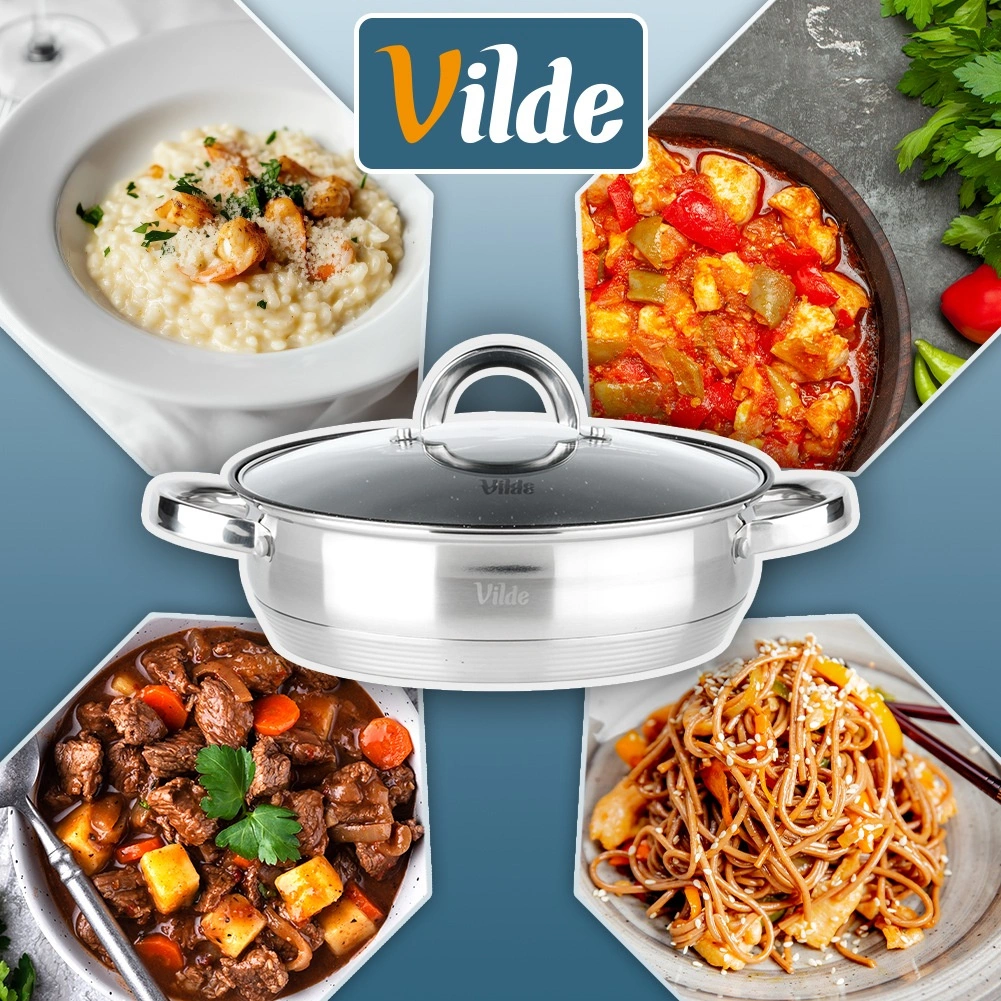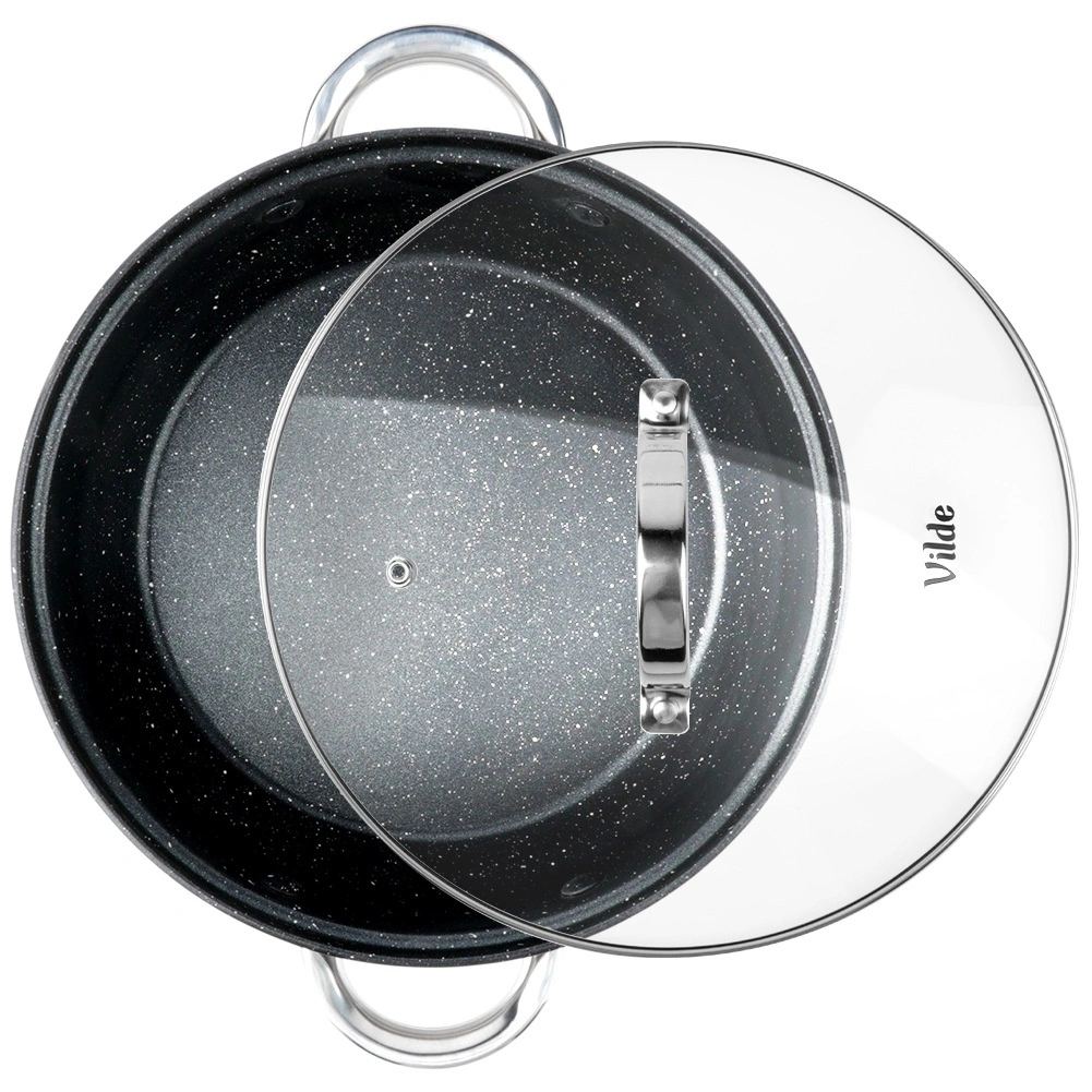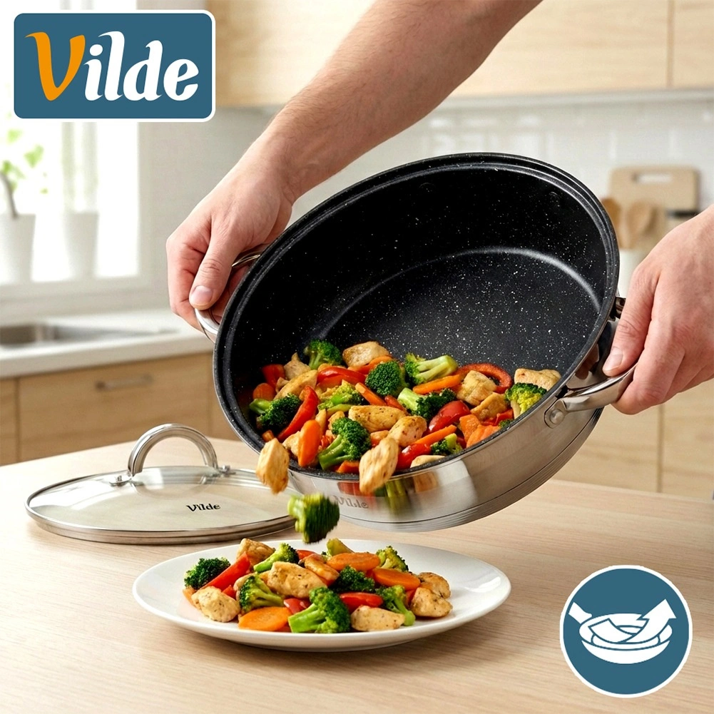 Vnitřek pánve je opatřen odolnou nepřilnavou vrstvou se žulovým efektem, vnějšek kombinuje matnou a vysoce leštěnou úpravu. Výrobek splňuje evropské standardy kvality. Originální produkt značky Vilde z linie INOXCELLENT.