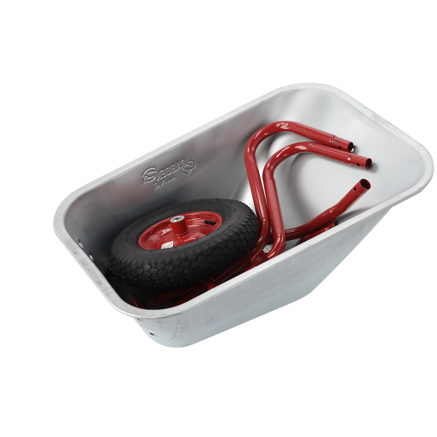 Hluboká ocynkovaná ocelová vana je odolná proti korozi i mechanickému opotřebení a pojme až 120 litrů materiálu.