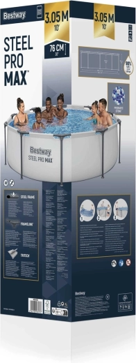 Model BESTWAY Steel Pro Max kombinuje stabilní rám se zvýšenou odolností proti korozi a robustní třívrstvý materiál stěn, který lépe odolává protržení a protažení. Díky kompaktním rozměrům 305 × 76 cm se vejde na většinu zahrad a zároveň poskytne dost prostoru pro pohodlné koupání.
