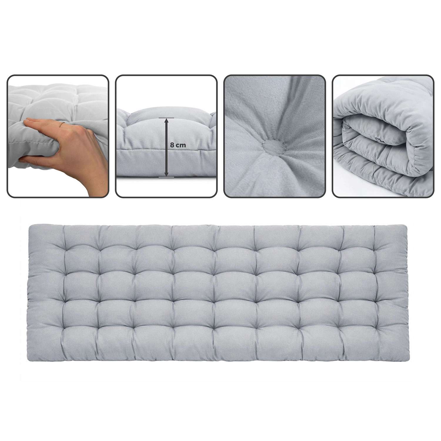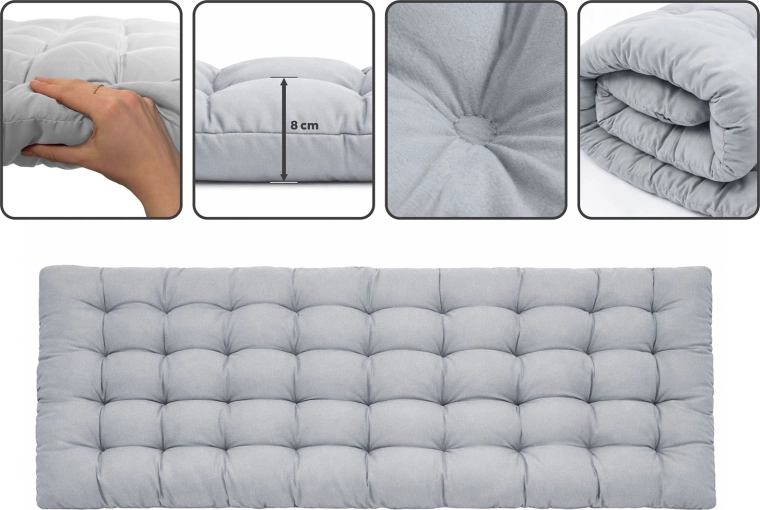 Měkký, hustě vyplněný matrac s prošíváním drží tvar a poskytuje příjemnou měkkost i při delším ležení. Součástí je i odnímatelný polštář.