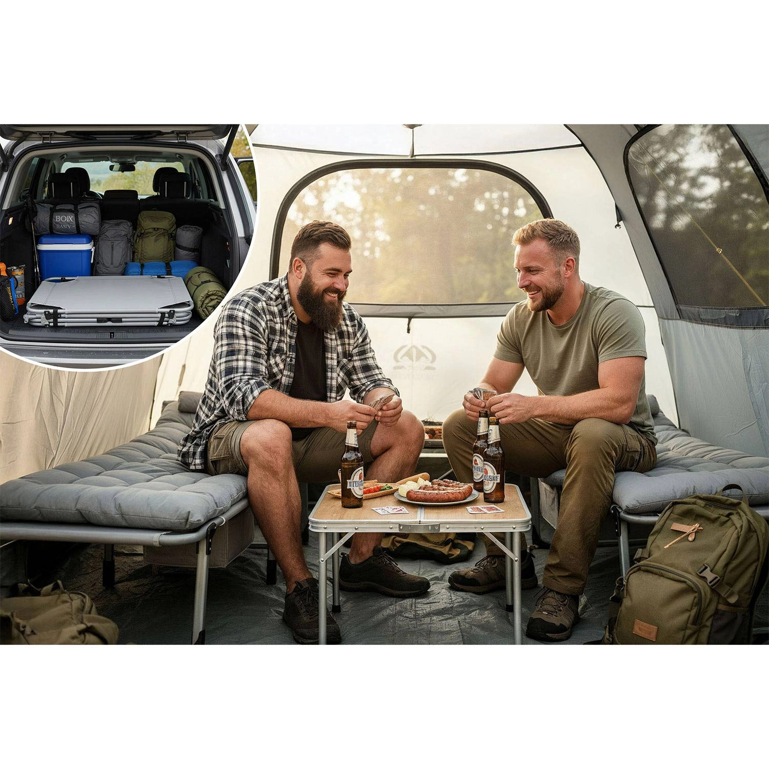 Využijete jej na kempování, zahradě, terase, balkoně, u bazénu i jako rychlé řešení pro přespání hostů. Neutrální šedá barva se hodí do každého prostředí a elegantně doplní vaši venkovní zónu odpočinku.
