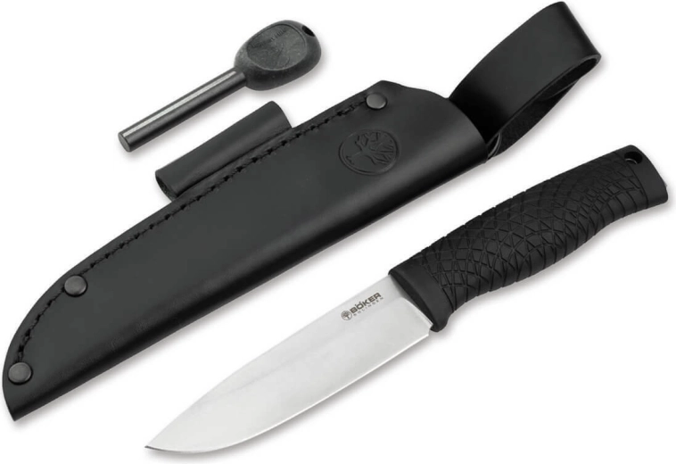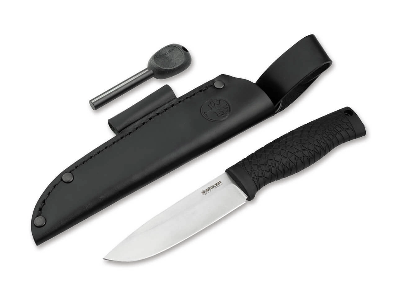Outdoorový nůž Böker Manufaktur Solingen Bronco je spolehlivý partner pro bushcraft, kempování i survival. Nabízí širokou čepel z oceli CPM-3V s hladkým ostřím, jednostrannou záštitu pro bezpečný úchop a odolnou rukojeť z TPE s jistou trakcí i za mokra. Součástí je kvalitní kožené pouzdro s křesadlem pro rychlé rozdělání ohně.