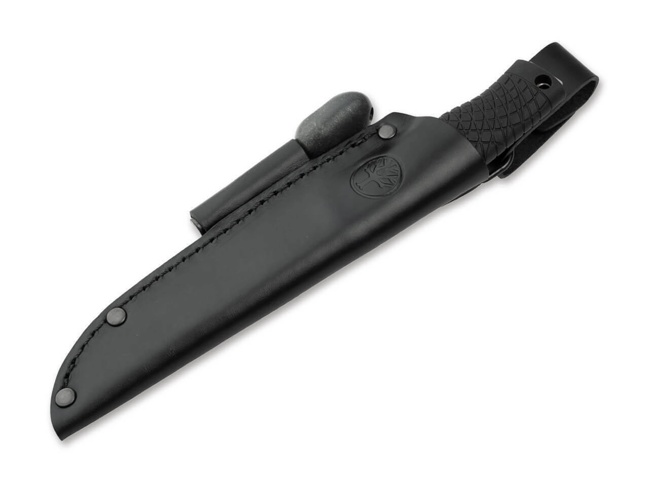 - Kožené pouzdro s křesadlem pro bezpečné nošení a snadné rozdělání ohně.