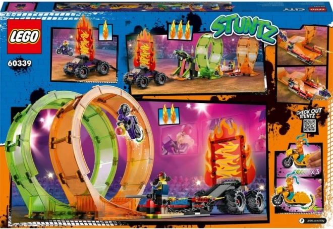 Stavebnice LEGO City Stuntz Kaskadérská dvojitá smyčka přináší dětem od 7 let nekonečné možnosti hraní. Skladba arény s ohnivou smyčkou, smyčkou s hadí tlamou a efektní ohnivou stěnou posouvá kaskadérské triky na novou úroveň. Motorky se setrvačníkem snadno naberou rychlost a vyrazí do akce, zatímco monster truck s rampou završí show velkolepým skokem.