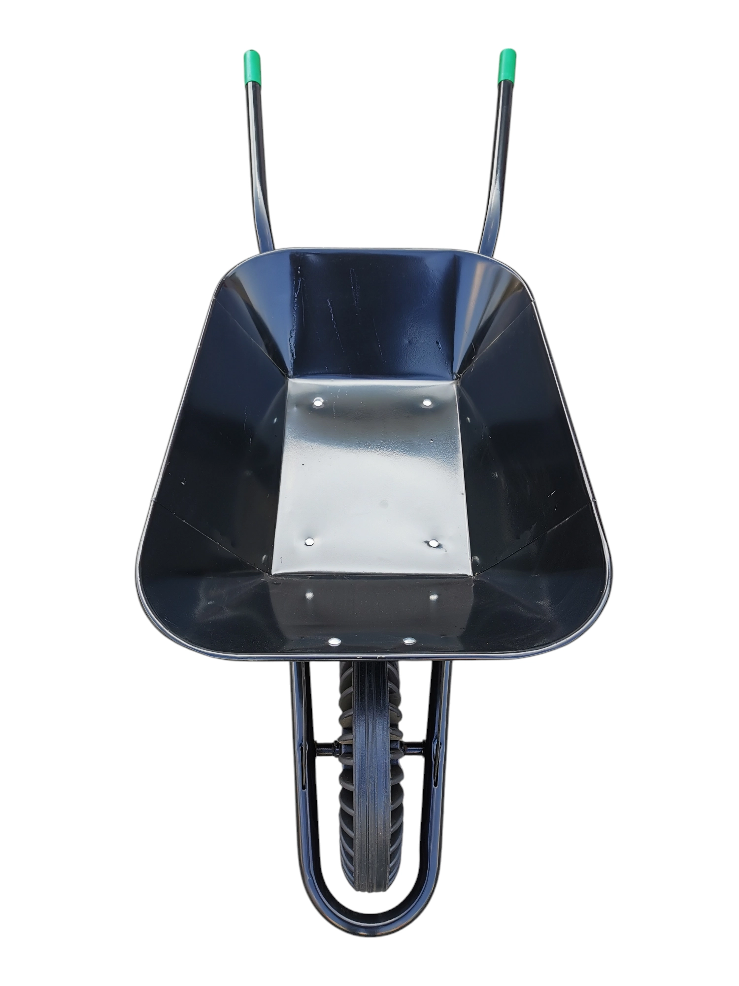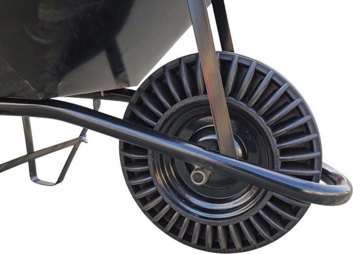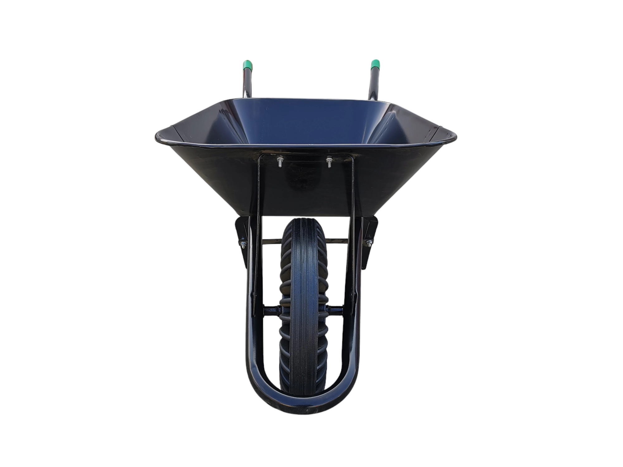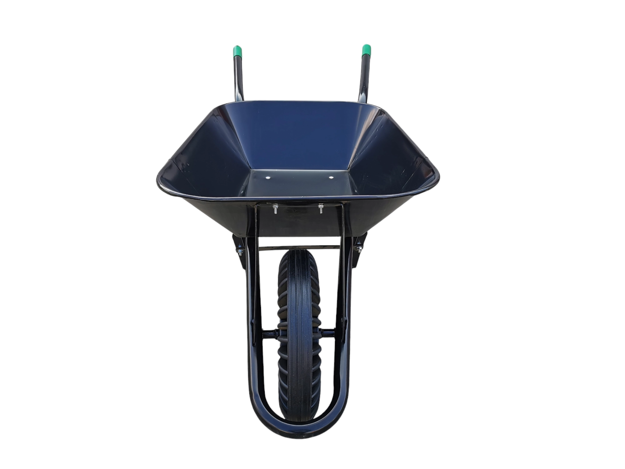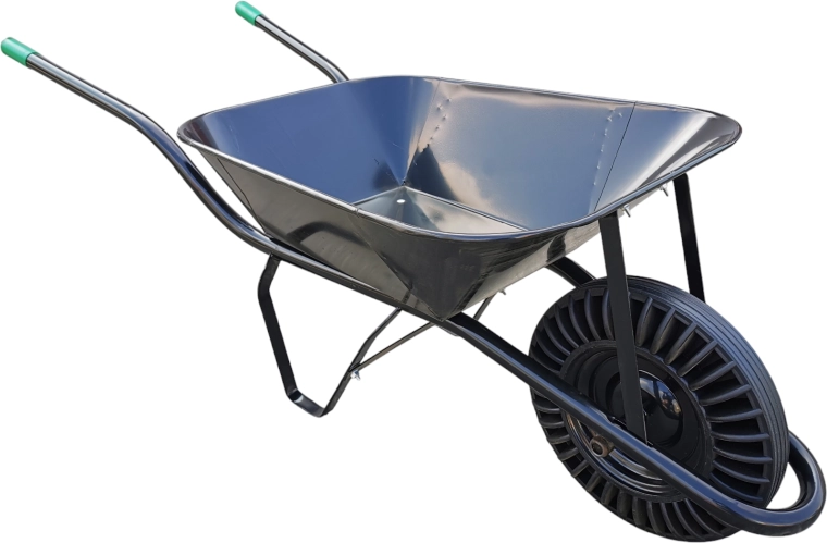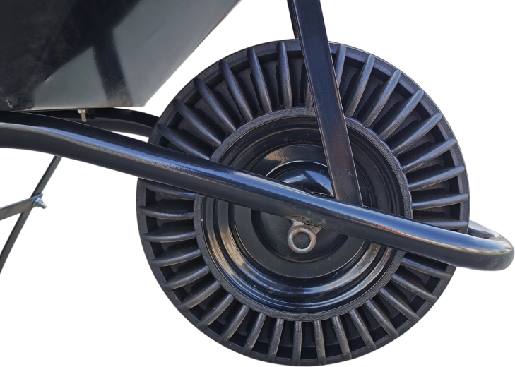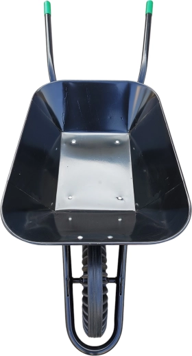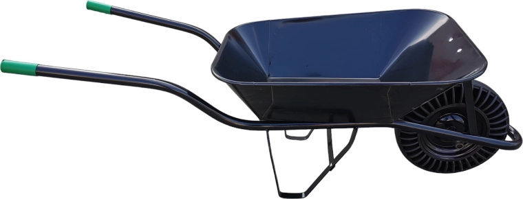 Bodovaná ocelová korba v černém provedení je dimenzována na každodenní zátěž a snadno se čistí. Ergonomické rukojeti ve výšce 530 mm usnadňují ovládání a přesné vysypávání. Díky kompaktním rozměrům se kolečko dobře ovládá i ve stísněných prostorech.