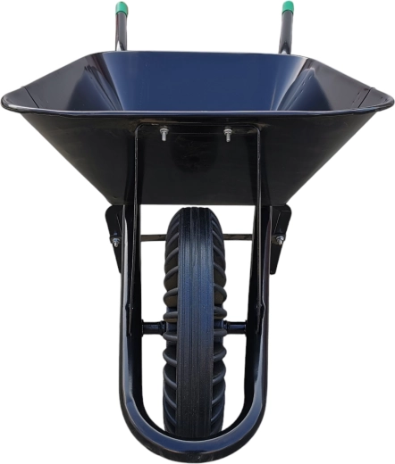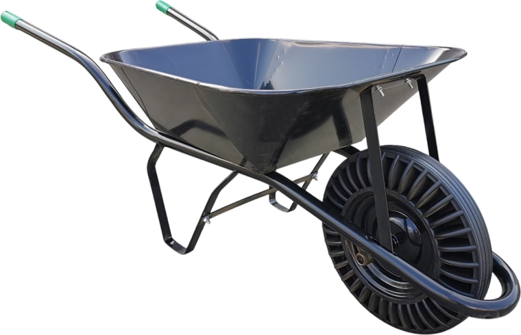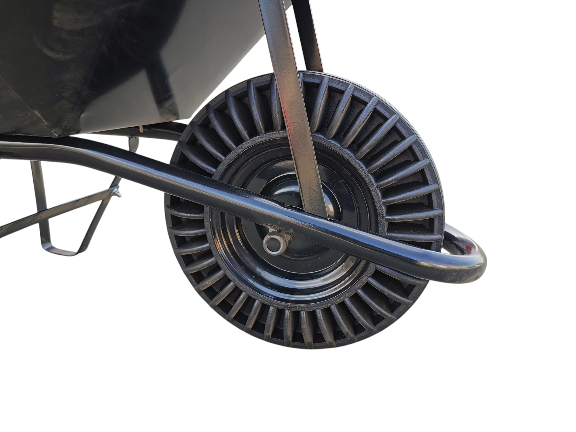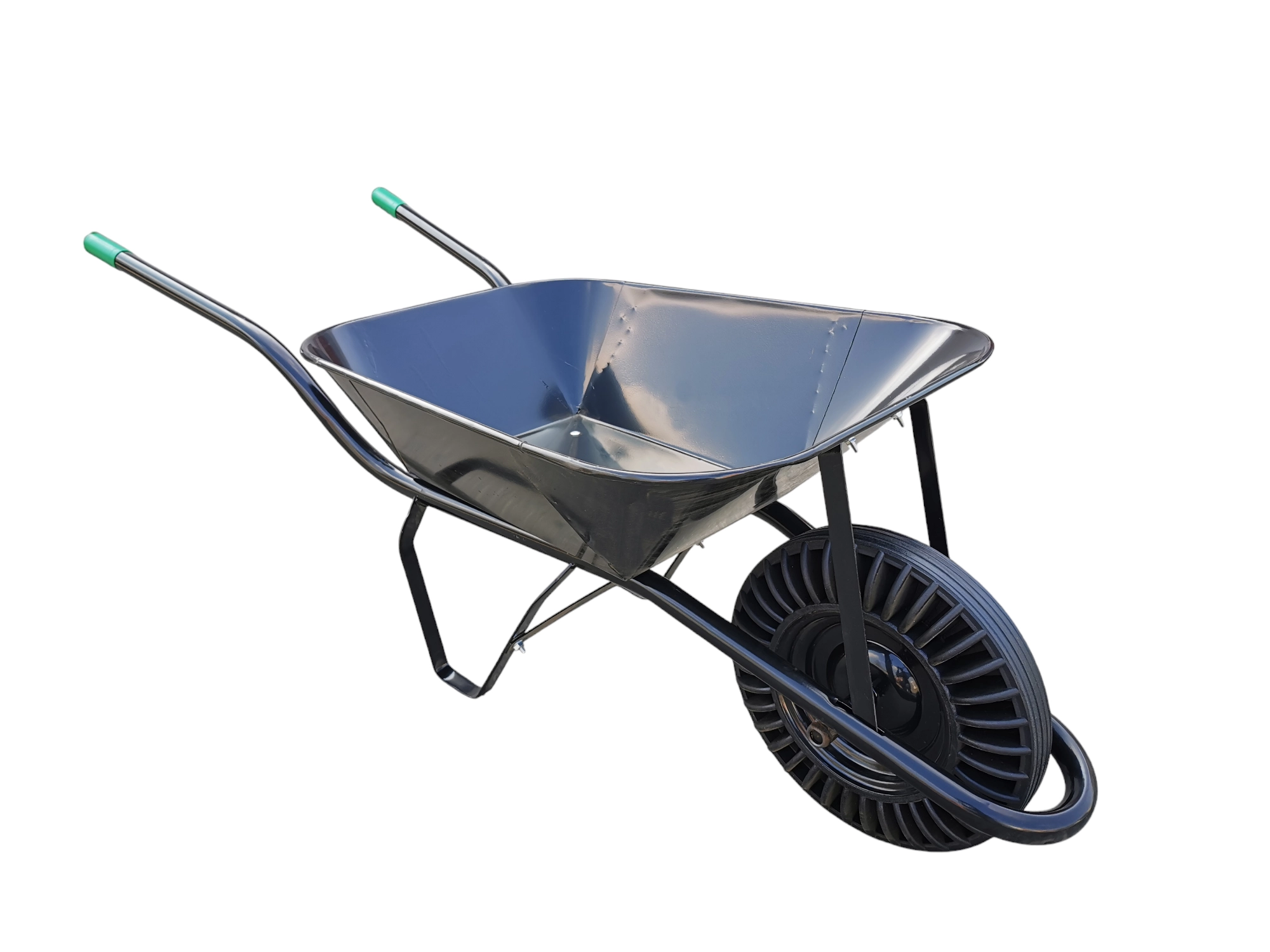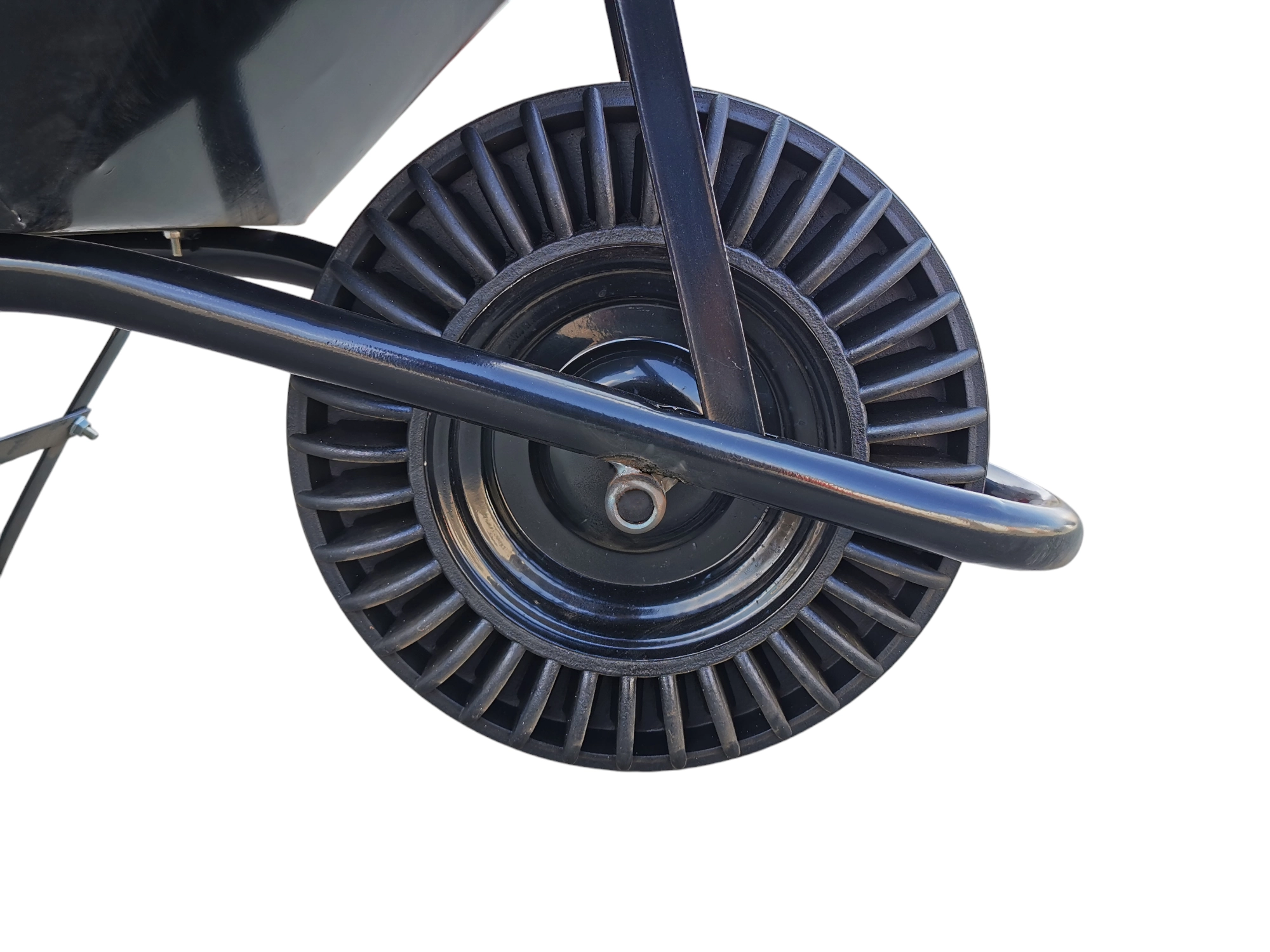 Bodovaná ocelová korba v černém provedení je dimenzována na každodenní zátěž a snadno se čistí. Ergonomické rukojeti ve výšce 530 mm usnadňují ovládání a přesné vysypávání. Díky kompaktním rozměrům se kolečko dobře ovládá i ve stísněných prostorech.