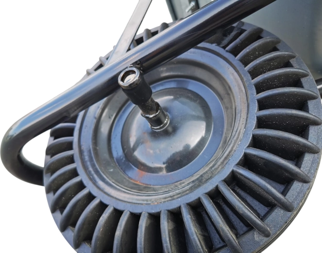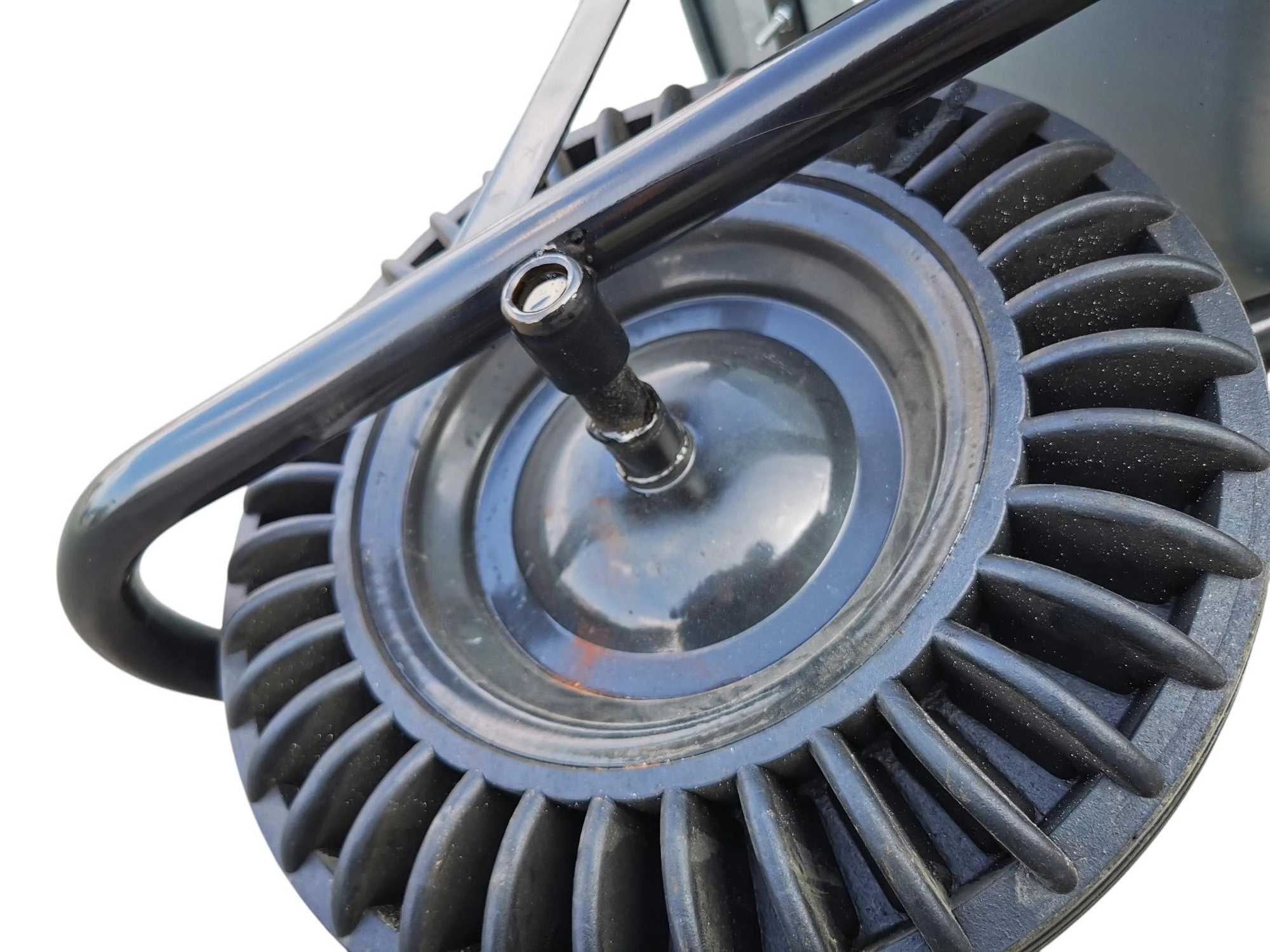 Plné gumové kolo je odolné proti propíchnutí a nevyžaduje huštění. Zajišťuje hladký pojezd i v nerovném terénu a snižuje prostoj kvůli údržbě.