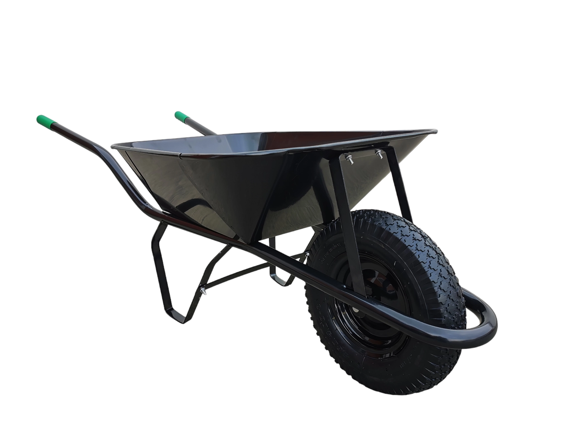 Díky černé bodované (profilované) korbě je kolečko odolné proti deformacím a lépe snáší náročné podmínky. Ergonomické rukojeti ve výšce cca 530 mm umožňují pohodlnou manipulaci a lepší kontrolu při jízdě s nákladem.
