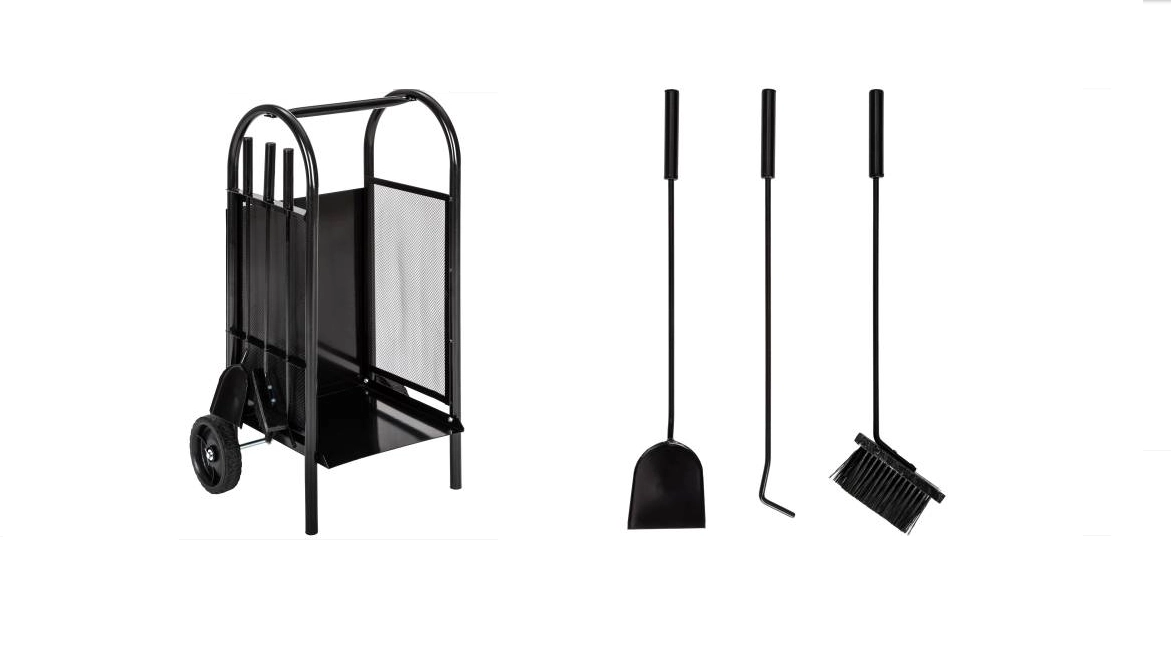 Praktická sada do krbu s integrovaným úložným prostorem na polena pro pořádek u krbu i elegantní vzhled. Obsahuje lopatku, pohrabáč a smetáček, je vyrobena z odolného kovu o tloušťce 1,0 mm a vyniká stabilní konstrukcí v černé barvě.