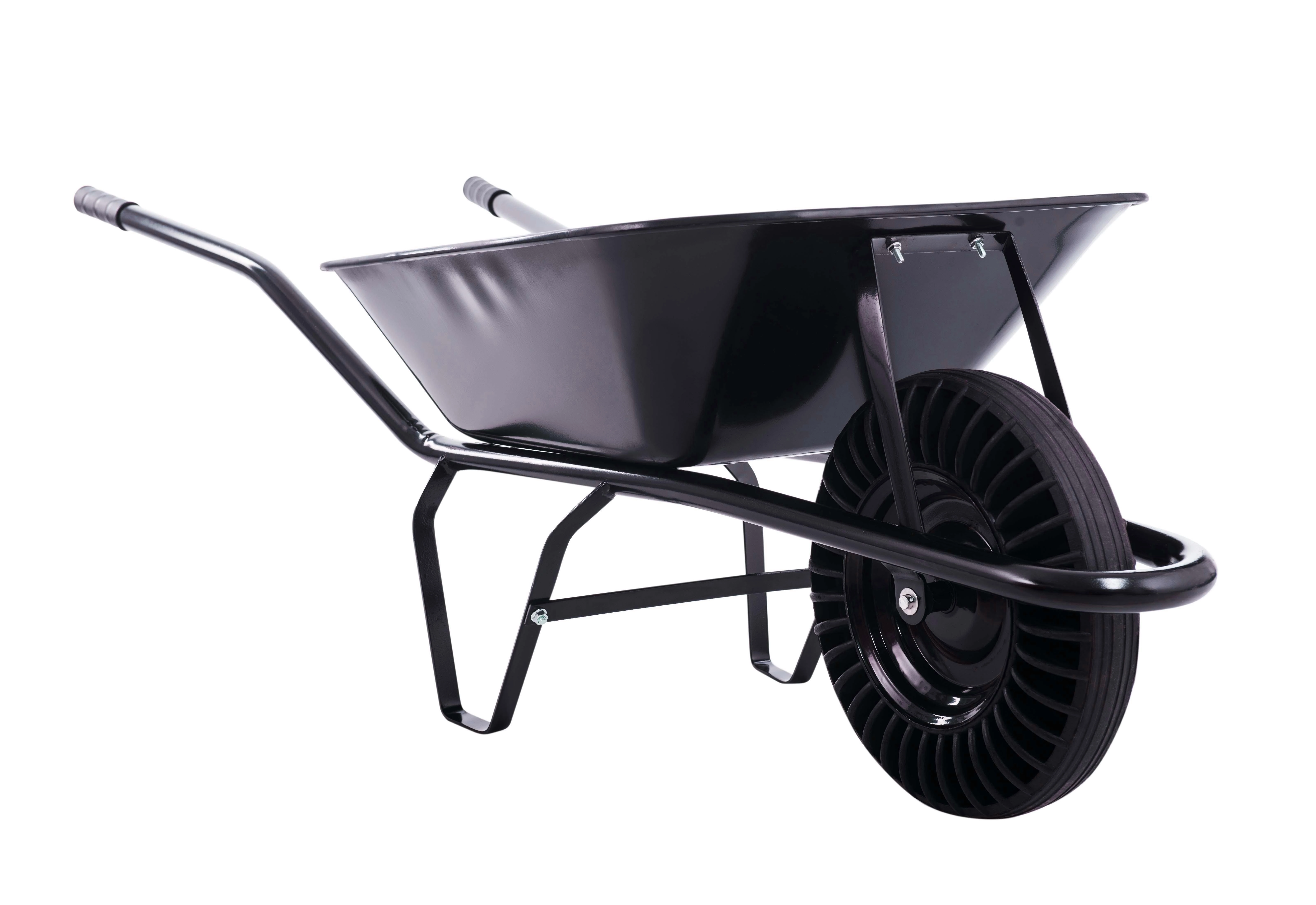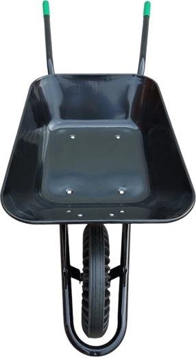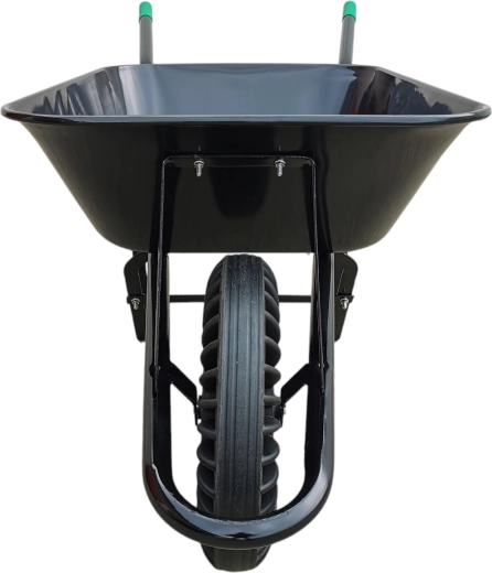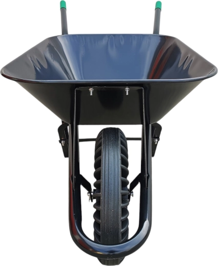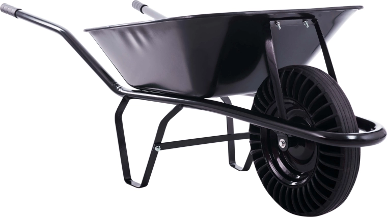Robustní stavební kolečko s objemem 60 l a plným pryžovým kolem pro maximální odolnost bez rizika defektu. Tažená ocelová korba nabízí vysokou pevnost pro převoz suti, písku, hlíny i dřeva. Stabilní rám a ergonomické rukojeti zajišťují pohodlnou manipulaci na stavbě i na zahradě.