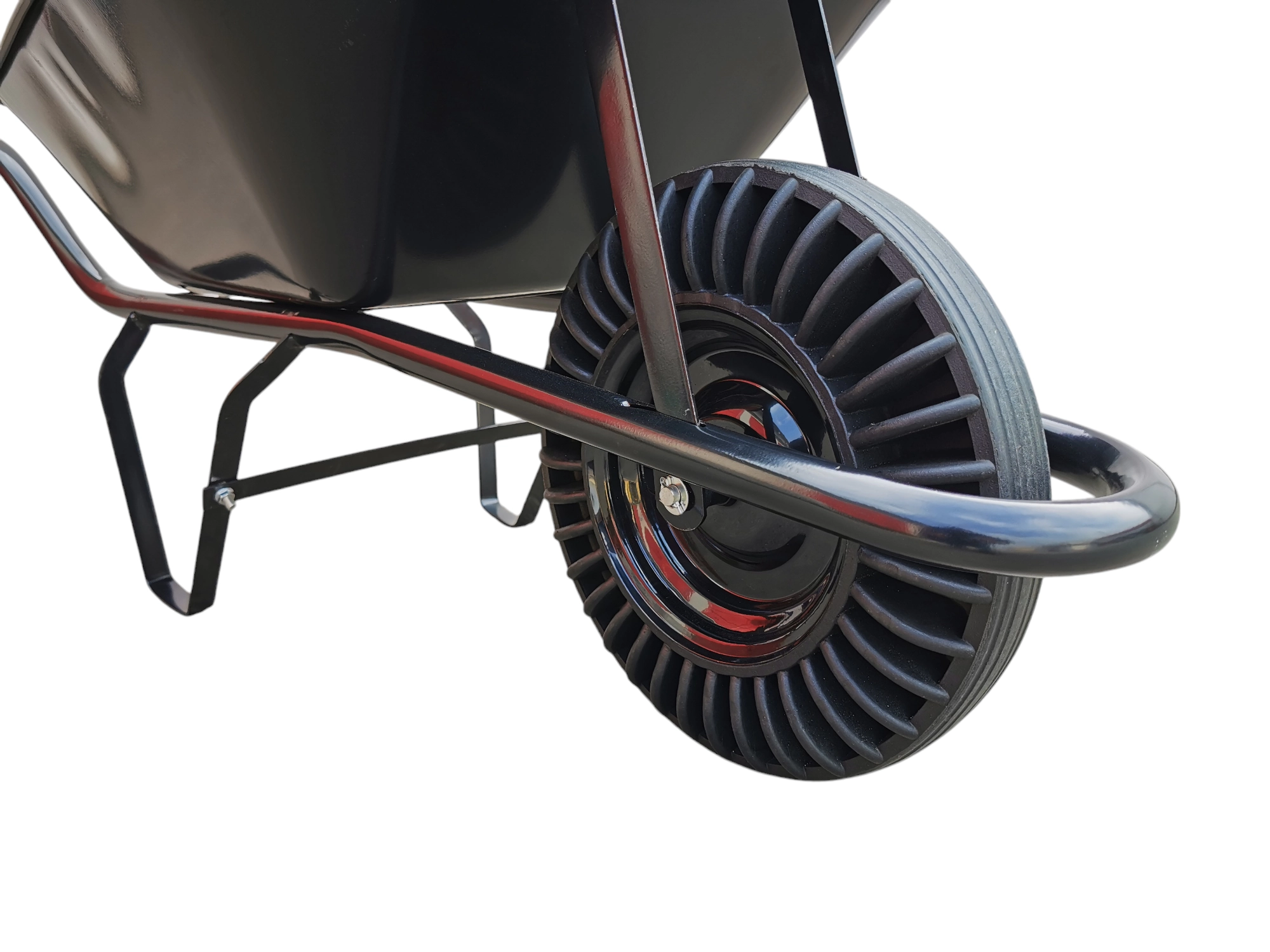 - Bezúdržbové kolo: plná pryž odolná proti propíchnutí, ideální pro stavbu i nerovný terén.