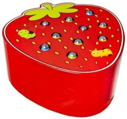 Zábavná dřevěná hra ve tvaru lahodné jahody rozvíjí jemnou motoriku a soustředění. Děti pomocí magnetické tyčky vytahují a vkládají červíky do otvorů. Hra je z bezpečných materiálů a má živé barvy, které děti motivují ke hře a učení. Skvělá volba pro rozvoj koordinace oko–ruka, kreativity a trpělivosti.
