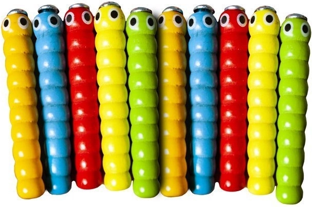 - Kompletní sada: dřevěná jahoda, magnetická tyčka a 10 červíků/gusenic
