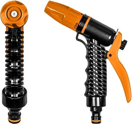 Ergonomicky tvarovaná rukojeť pohodlně padne do ruky a páka pro regulaci průtoku umožní přesnou kontrolu spotřeby vody. Odolná plastová konstrukce je navržena pro dlouhodobé používání a odolnost vůči povětrnostním vlivům.