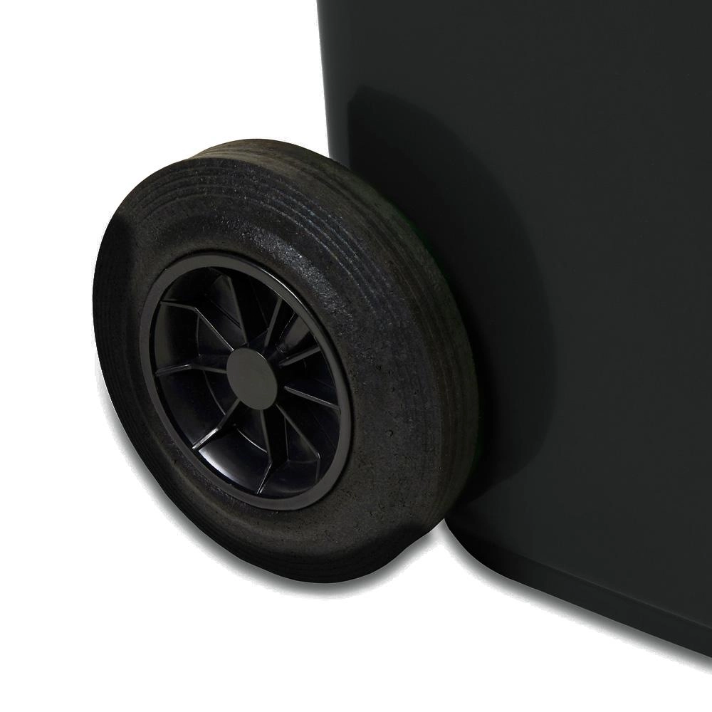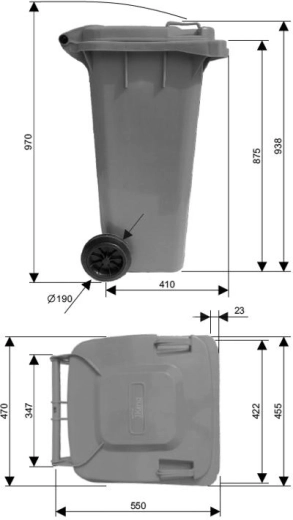 Robustní plastová konstrukce s vnitřním žebrováním zajišťuje dlouhou životnost a odolnost proti povětrnostním vlivům. Popelnice je vhodná pro pravidelný svoz a kompatibilní s běžnými svozovými systémy. Kompaktní rozměry umožňují umístění i v užších prostorech.