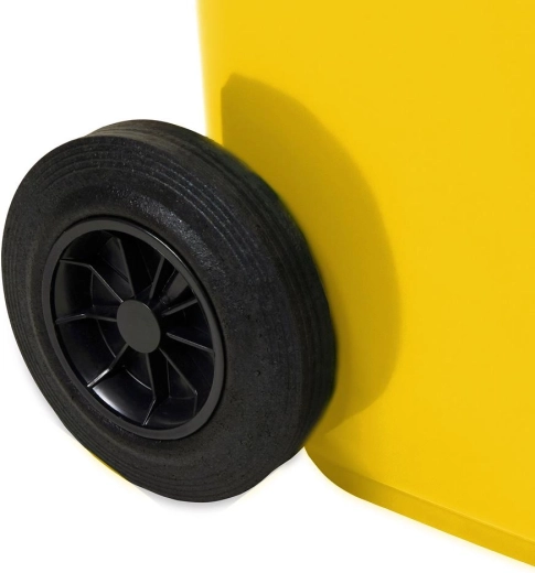 Tato žlutá 120l popelnice je vyrobena z odolného plastu pro každodenní používání. Uzavíratelné víko zadržuje pachy a nečistoty, zatímco robustní madla a dvě kolečka zajišťují pohodlné a bezpečné převážení. Díky nápadné barvě je vhodná pro třídění odpadu a přehlednou identifikaci.