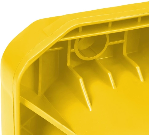 Pevné plastové provedení je odolné vůči povětrnostním vlivům. Žluté provedení usnadňuje třídění a viditelnost nádoby.