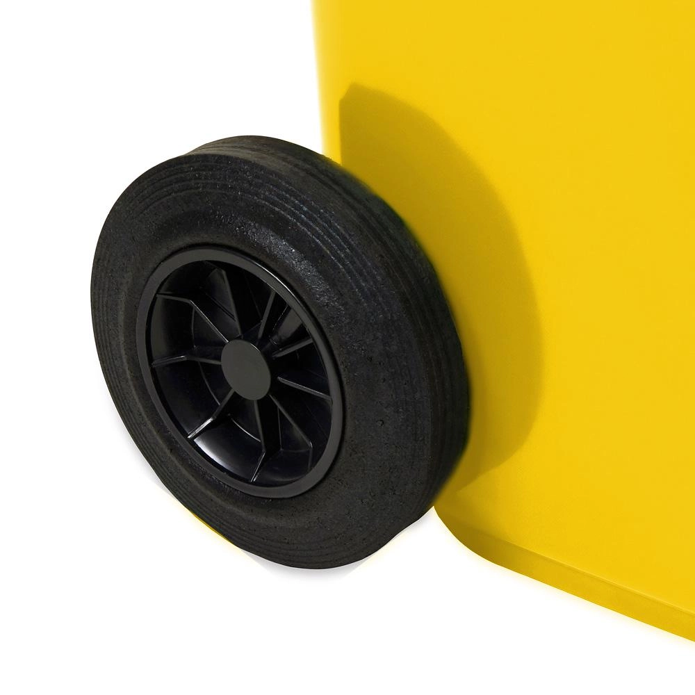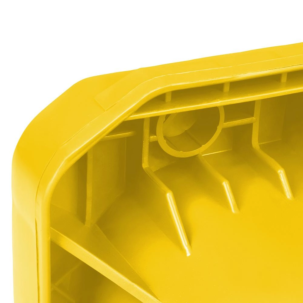 Výrazná žlutá barva usnadňuje třídění plastů a rychlou identifikaci. Recyklovatelný materiál podporuje udržitelný provoz a dlouhou životnost nádoby.