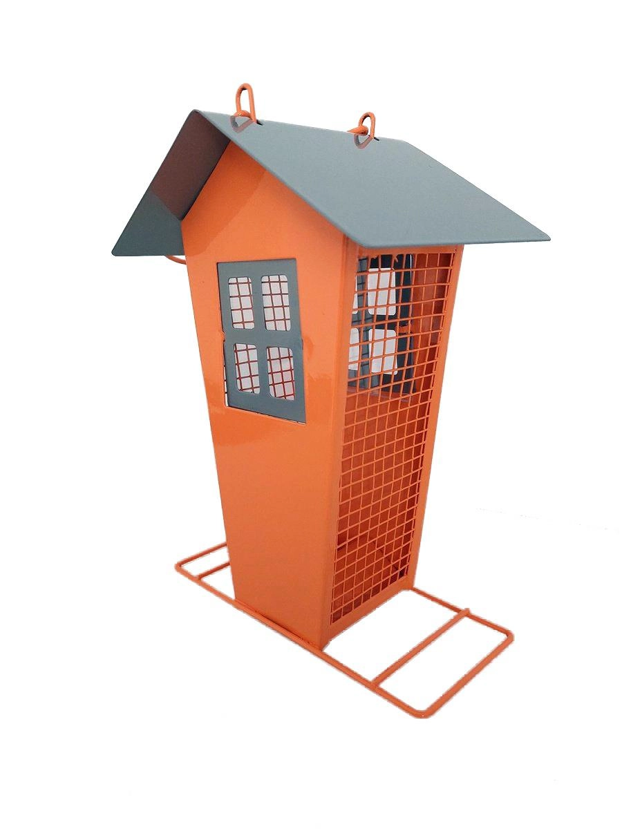 Toto kovové ptačí krmítko ve tvaru domečku je praktický a dekorativní doplněk každé zahrady. Poskytuje volně žijícím ptákům dostatek potravy v období nedostatku a zároveň oživí venkovní prostor.