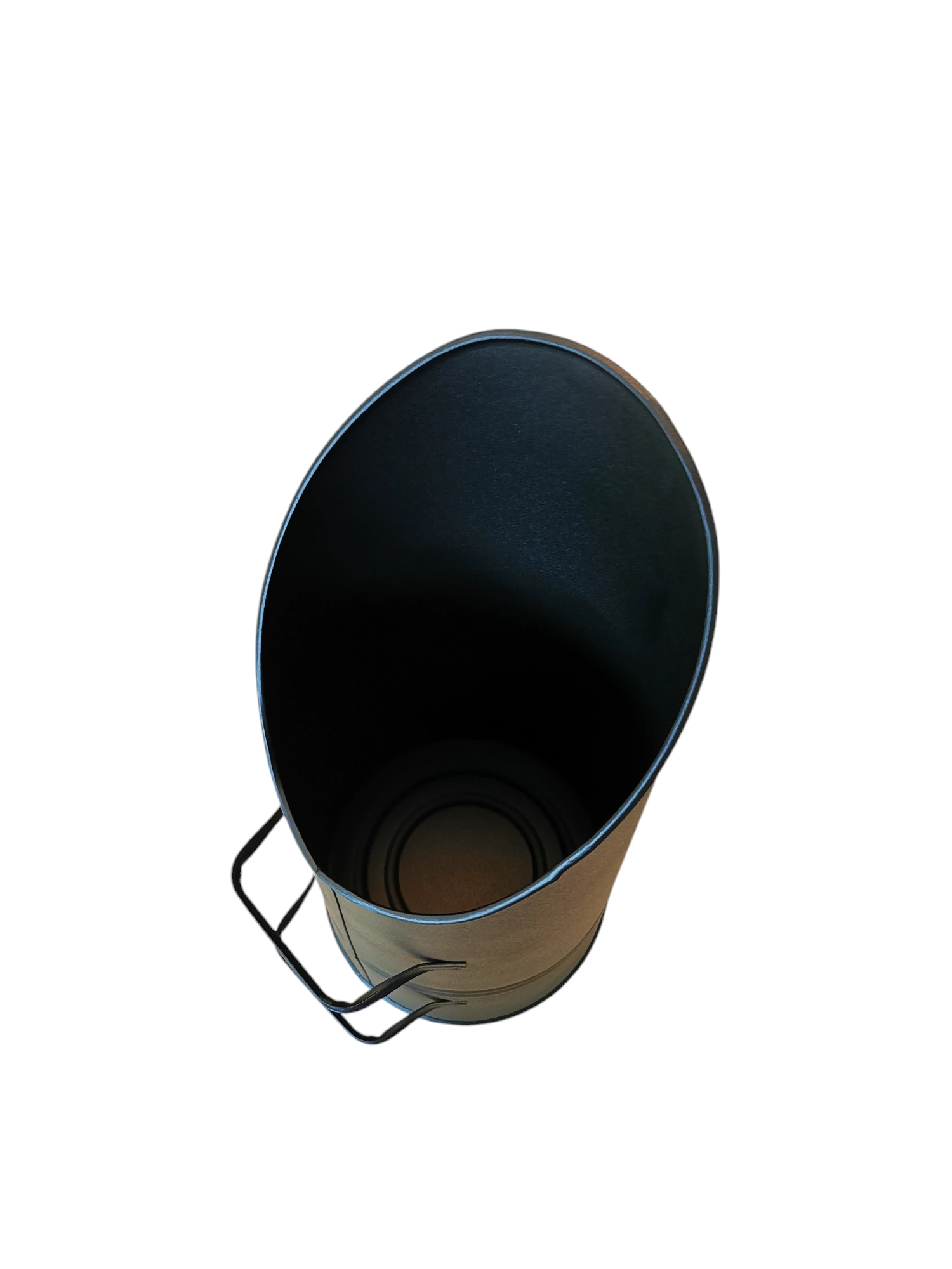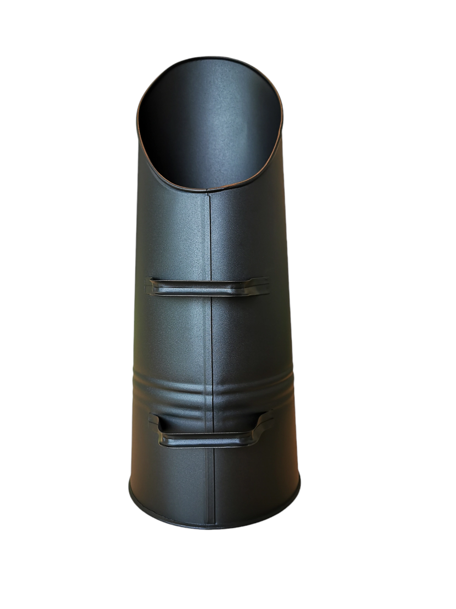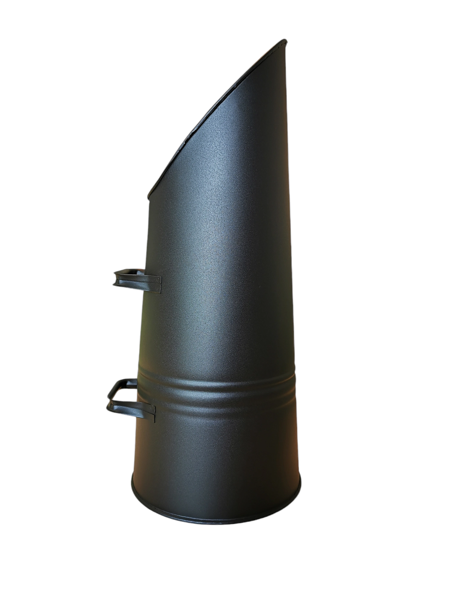 Tento velký kovový uhlák je navržen pro pohodlnou manipulaci s uhlím, briketami i popelem. Díky šikmému otvoru lze obsah bezpečně a přesně nasypat přímo do topeniště. Pevná ocel o tloušťce 1,2 mm zajišťuje dlouhou životnost i při každodenním používání.