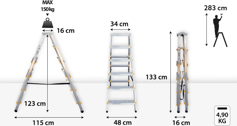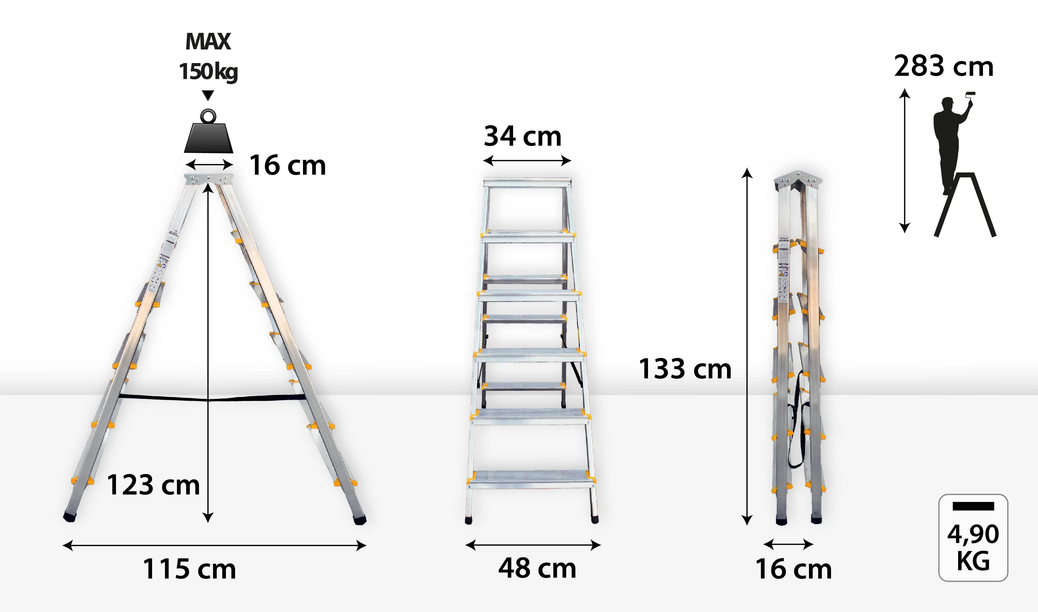 Vyrobeno v souladu s EN 131/EN 14183 a nezávisle testováno TÜV Rheinland pro vysokou bezpečnost a odolnost při zatížení do 150 kg.