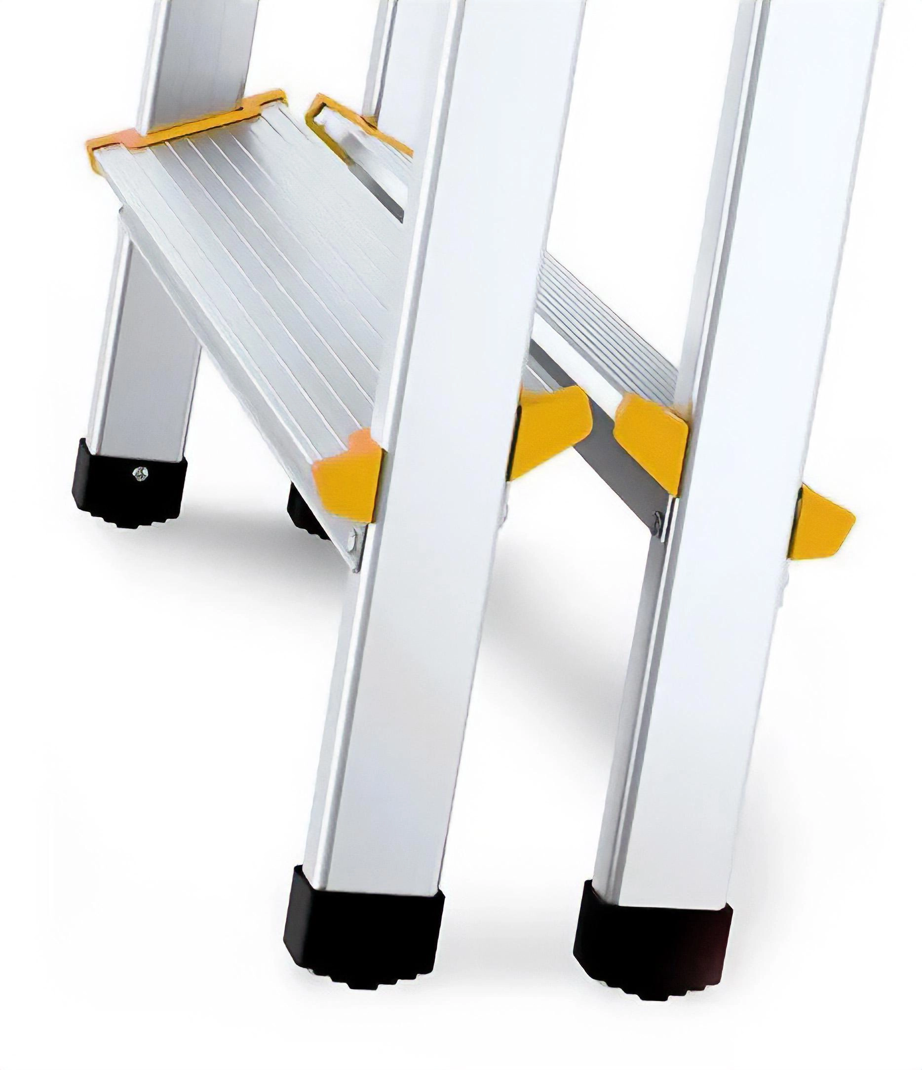 Protiskluzové nožičky, široká pracovní plošina a bezpečnostní pant bránící nadměrnému rozevření zajišťují jistotu při každém kroku.