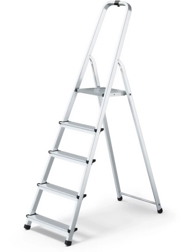 Tyto jednostranné hliníkové schůdky 1x5 kombinují nízkou hmotnost s vysokou stabilitou. Široká pracovní plošina 25 × 26 cm a bezpečnostní madlo ve výšce 60 cm zajišťují pohodlnou a jistou práci i při delším používání. Protiskluzové nožičky a vroubkované stupně zvyšují bezpečnost na různých typech podlah.
