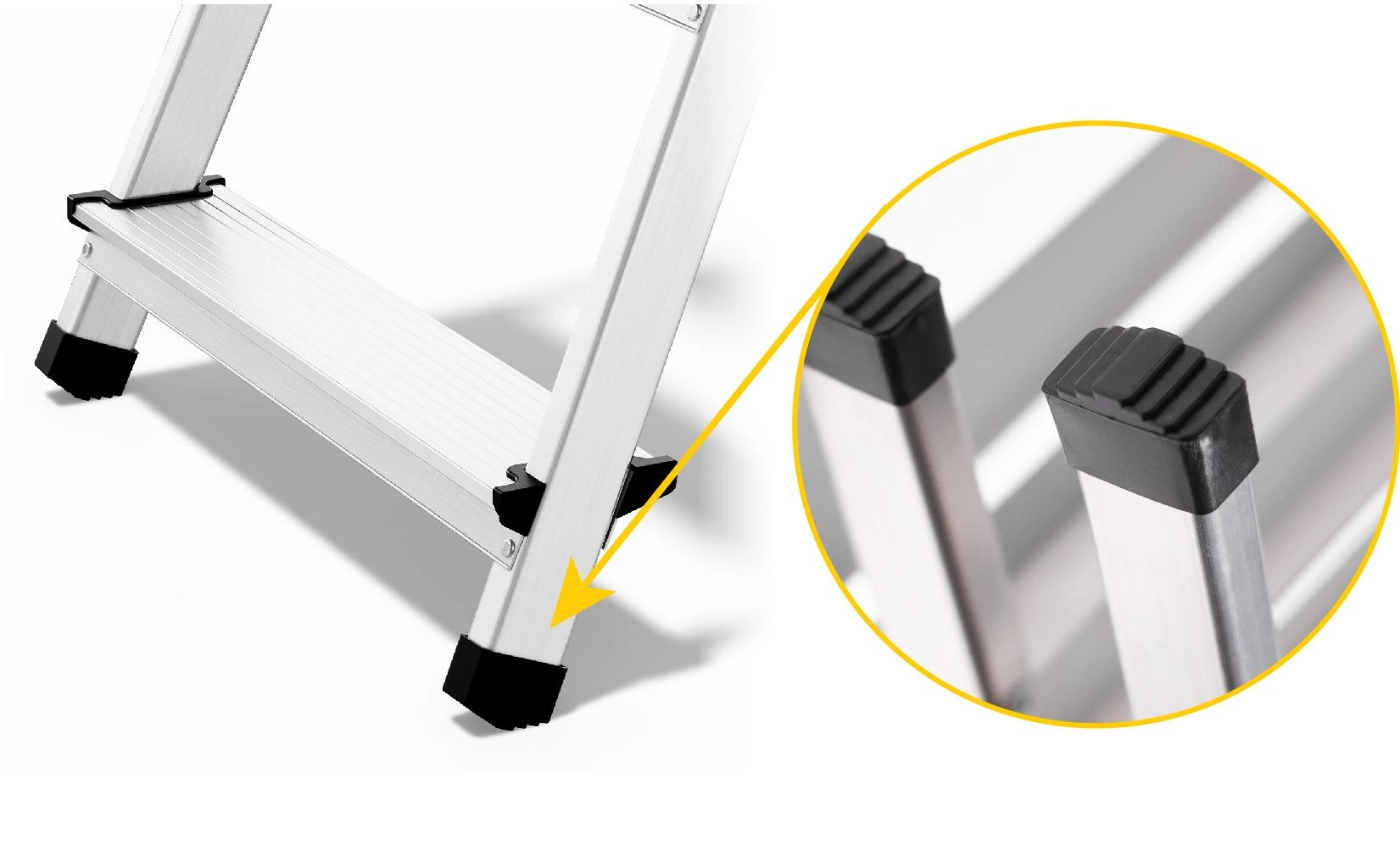 Gumové koncovky s vroubkovaným povrchem zvyšují přilnavost a chrání podlahu před poškrábáním. Stabilita i na hladkých površích.
