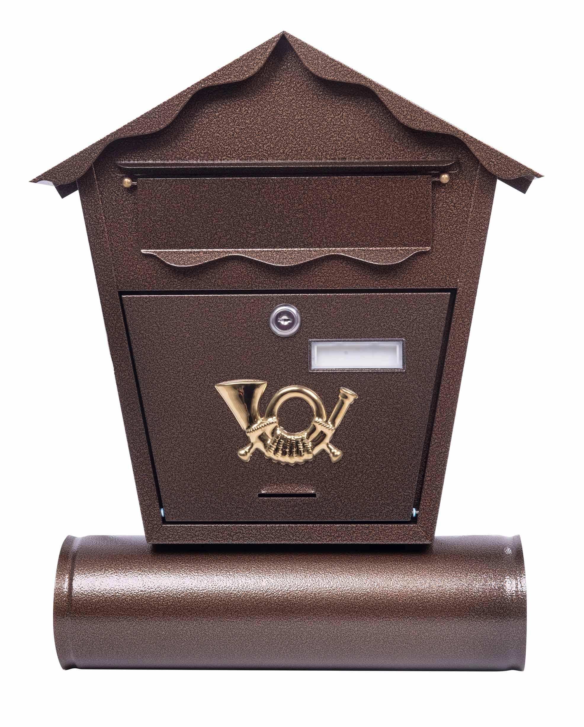 Poštovní schránka s tubusem a špičatou stříškou, bronzová