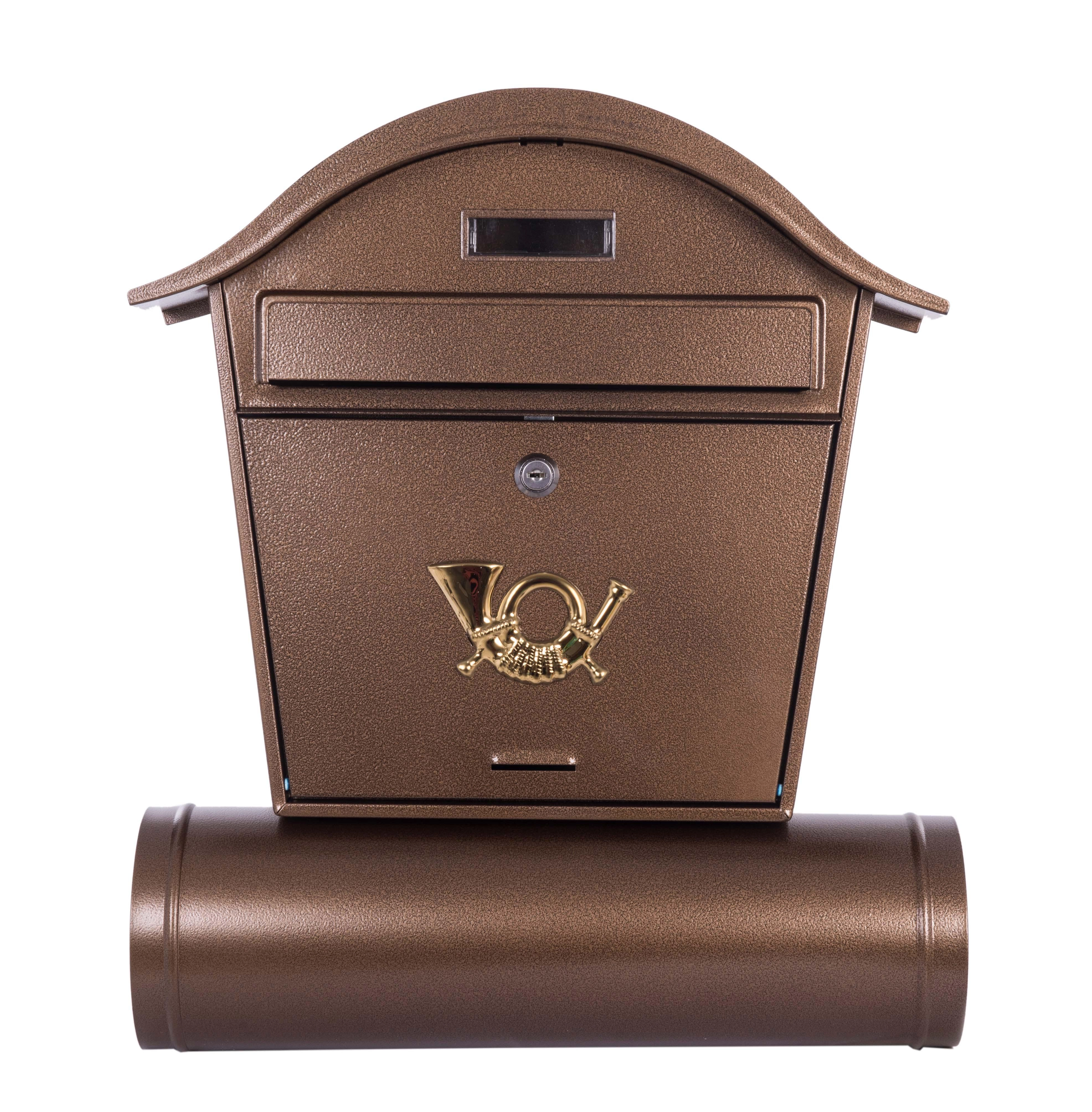 Poštovní schránka s kulatou stříškou a tubusem na noviny, hnědá antická